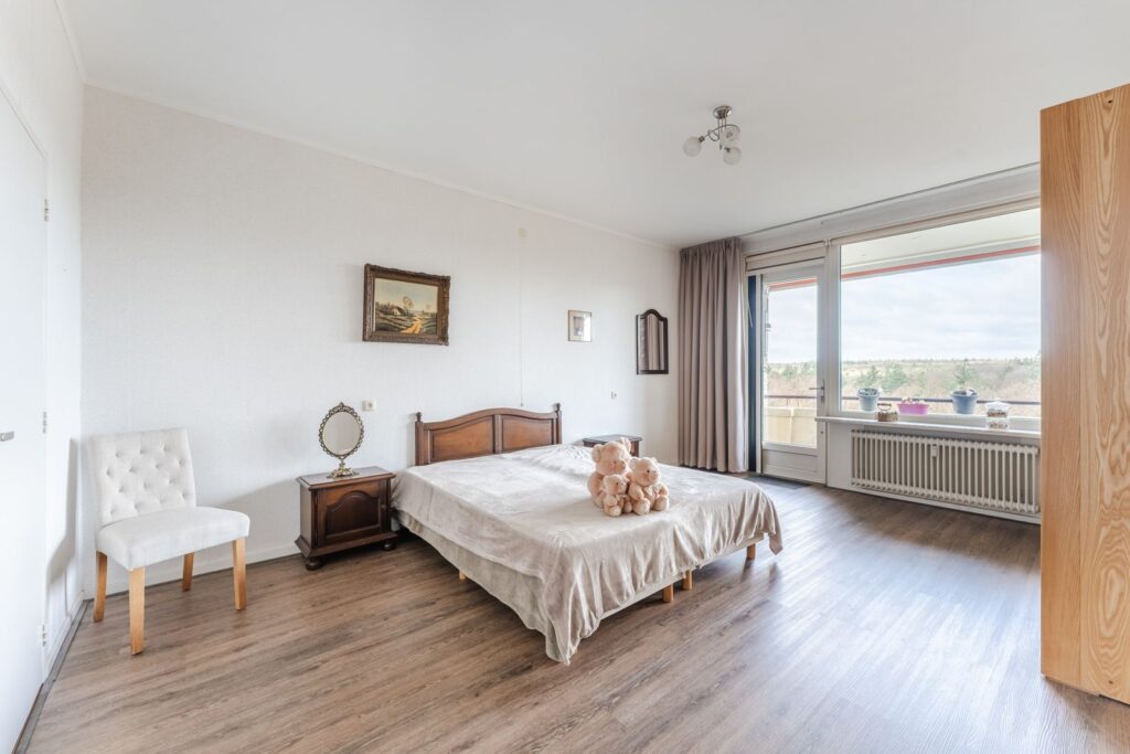 De royale slaapkamer beschikt over een vaste legkast en biedt voldoende ruimte voor een comfortabel tweepersoonsbed. Tevens is het balkon toegankelijk vanuit deze slaapkamer.