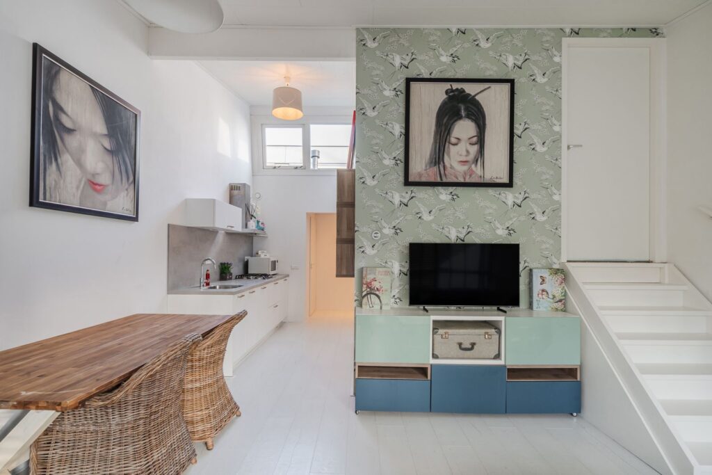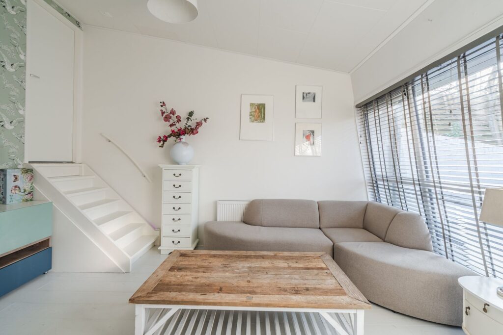 Via de entree bereikt u de hal met meterkast. Vanuit de hal komt u in de fijne, lichte woonkamer, voorzien van airconditioning en een grote glazen pui met uitzicht op de tuin.