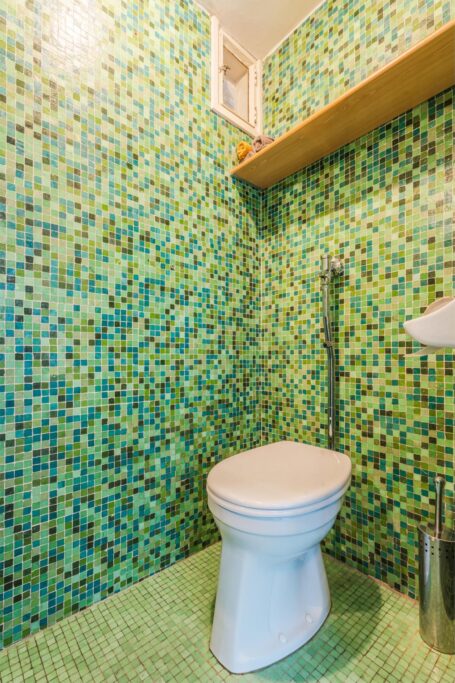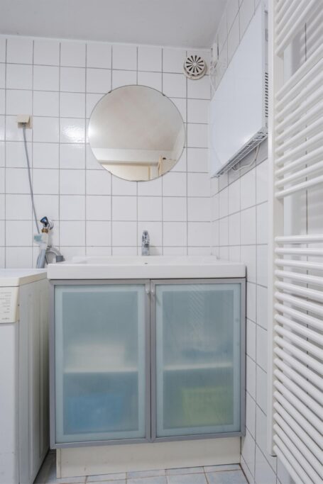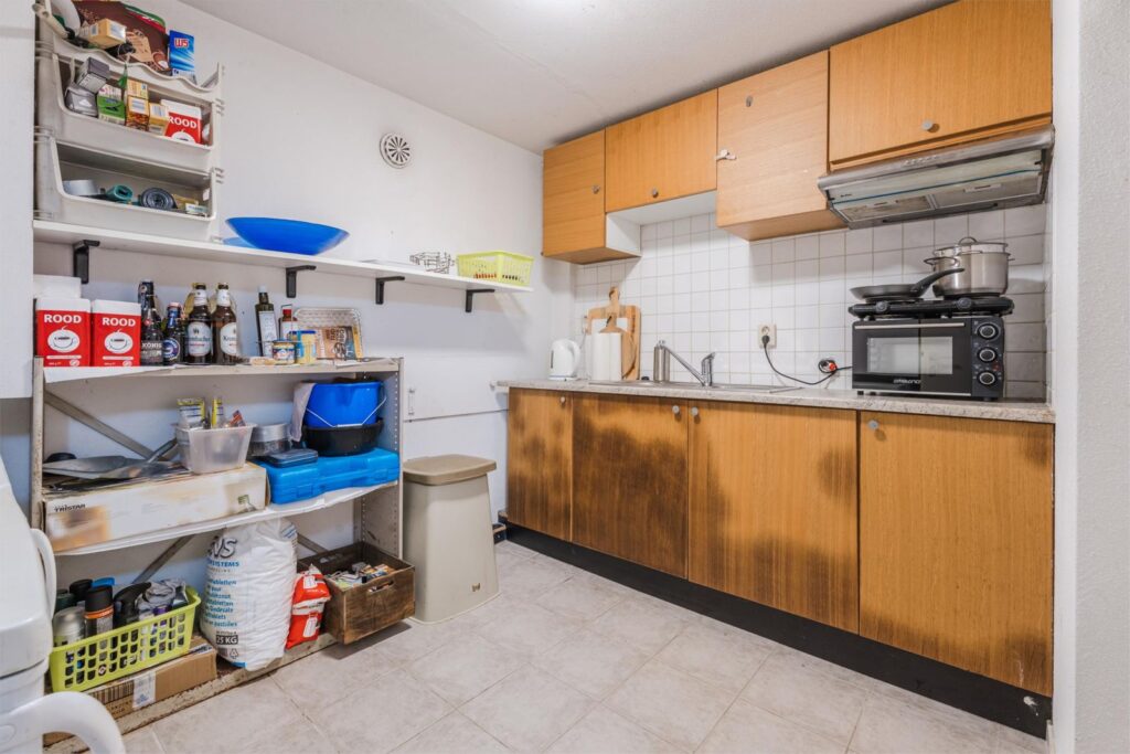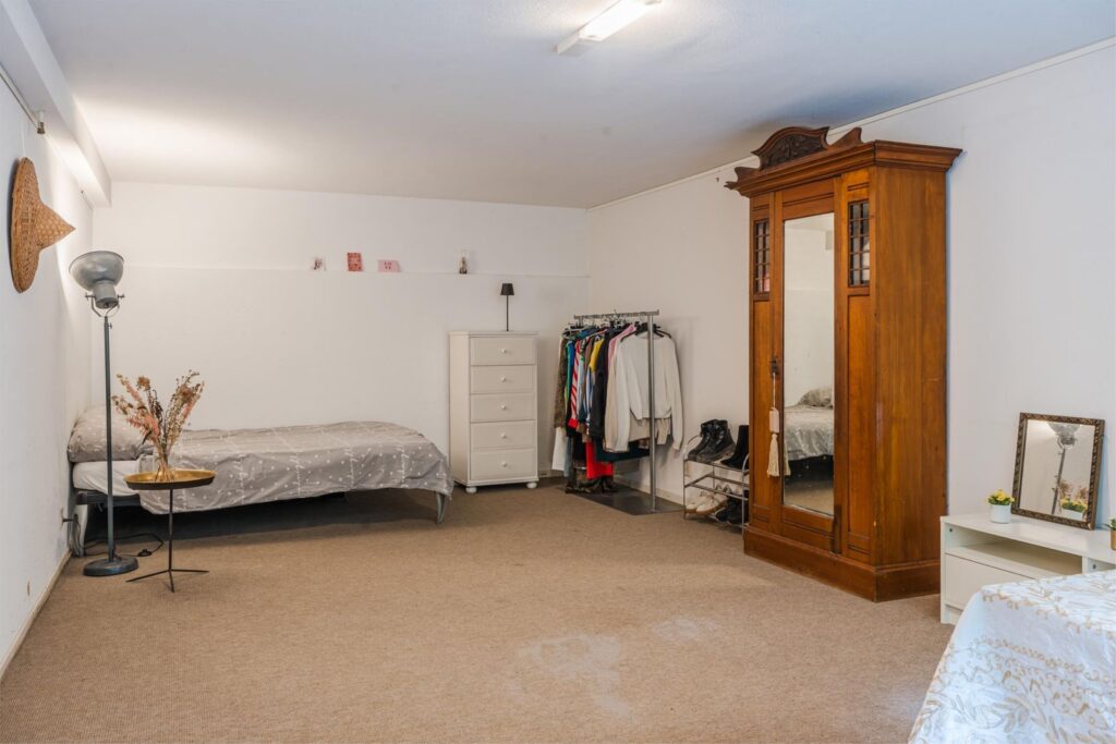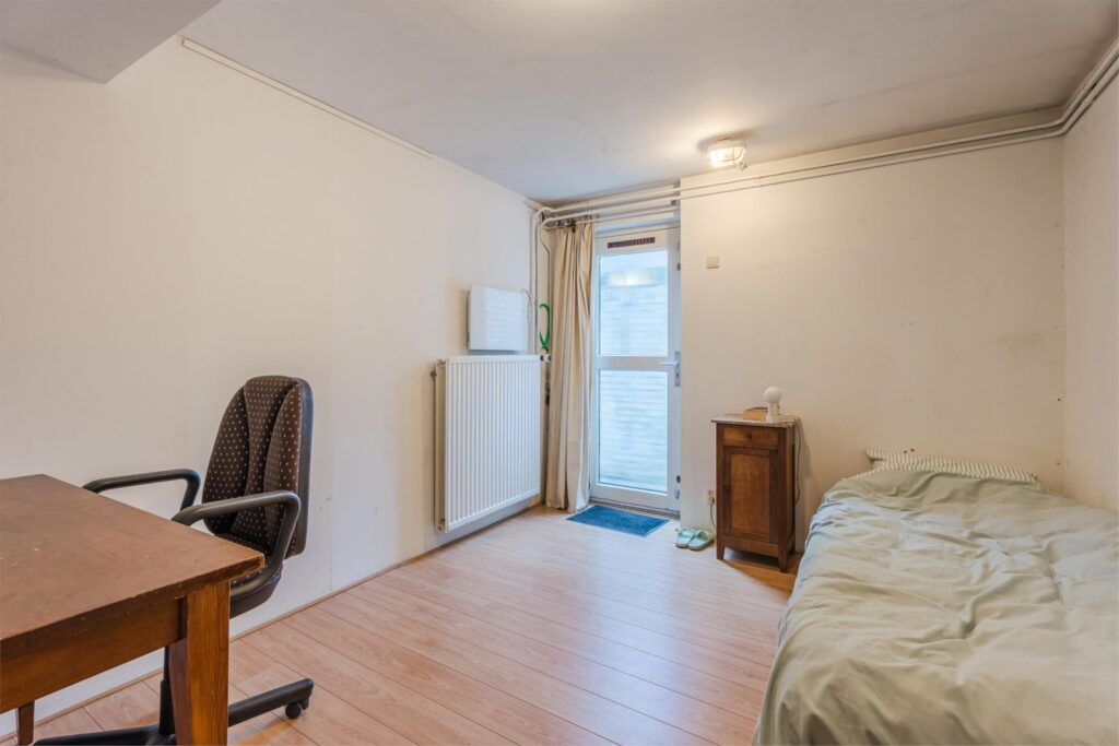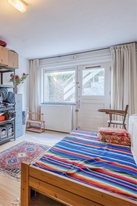 Drie slaapkamers waarvan twee met normale afmetingen en een grote. Daarnaast is een keuken met waterontharder voor het hele huis en een badkamer met douche, toilet, wastafel en aansluiting voor wasmachine. Vanuit twee slaapkamers zijn directe deuren naar buiten met trapopgang naar de tuin. Ook binnendoor is er een trapopgang naar de centrale hal. Dit ruime, houten trappenhuis verbindt alle vier verdiepingen met elkaar.