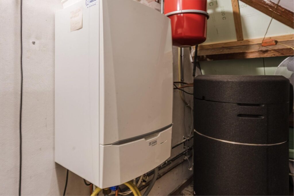 Verwarmingsketel uit 2013 met boiler uit 2020 en zonnecollector uit 2025, alle eigendom