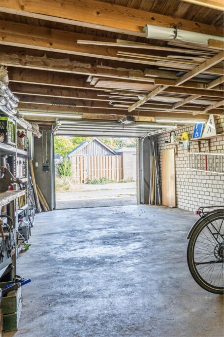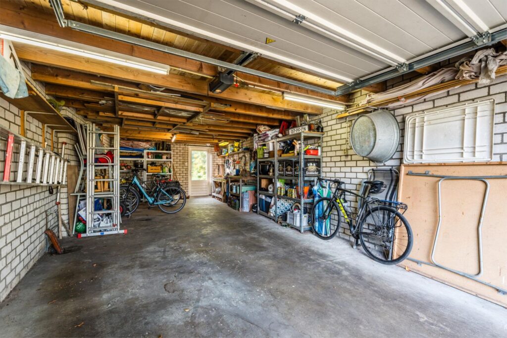Bereikbaar via de tuin, extra ruim ca. 42m², met een auto-ingang via de Einthovenstraat. Voor de garage is ook nog eigen ruimte voor een auto. De garagedeur is middels een afstandsbediening te openen als ook met een code. Auto, fietsen, werkbank, stellingkasten passen hier gemakkelijk in. In de garage is elektra en water.