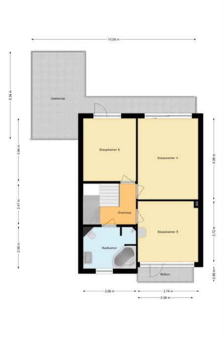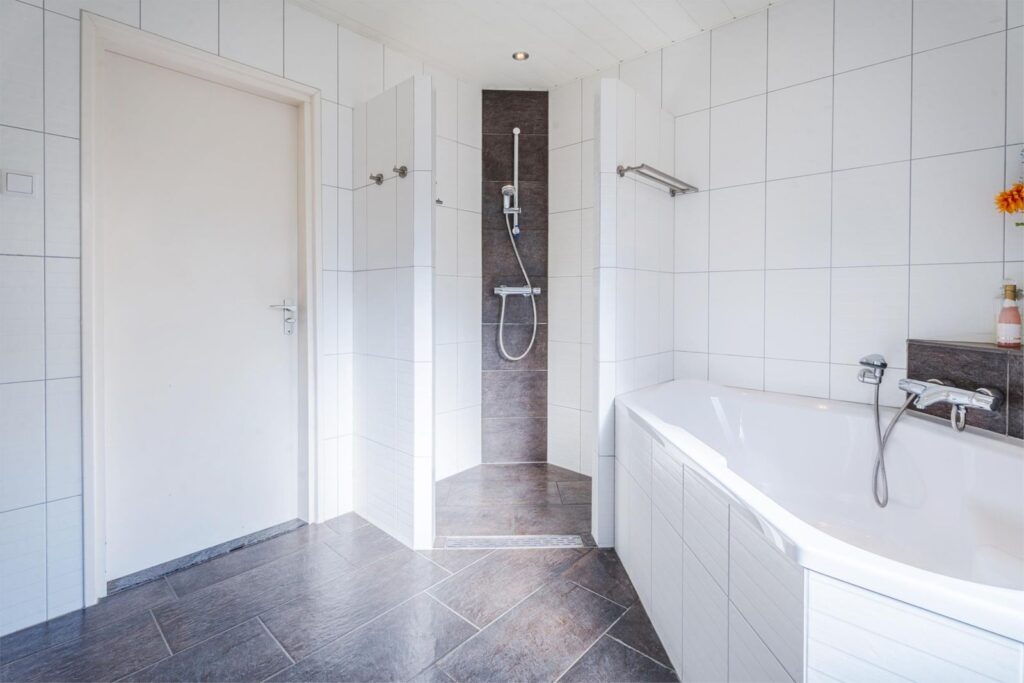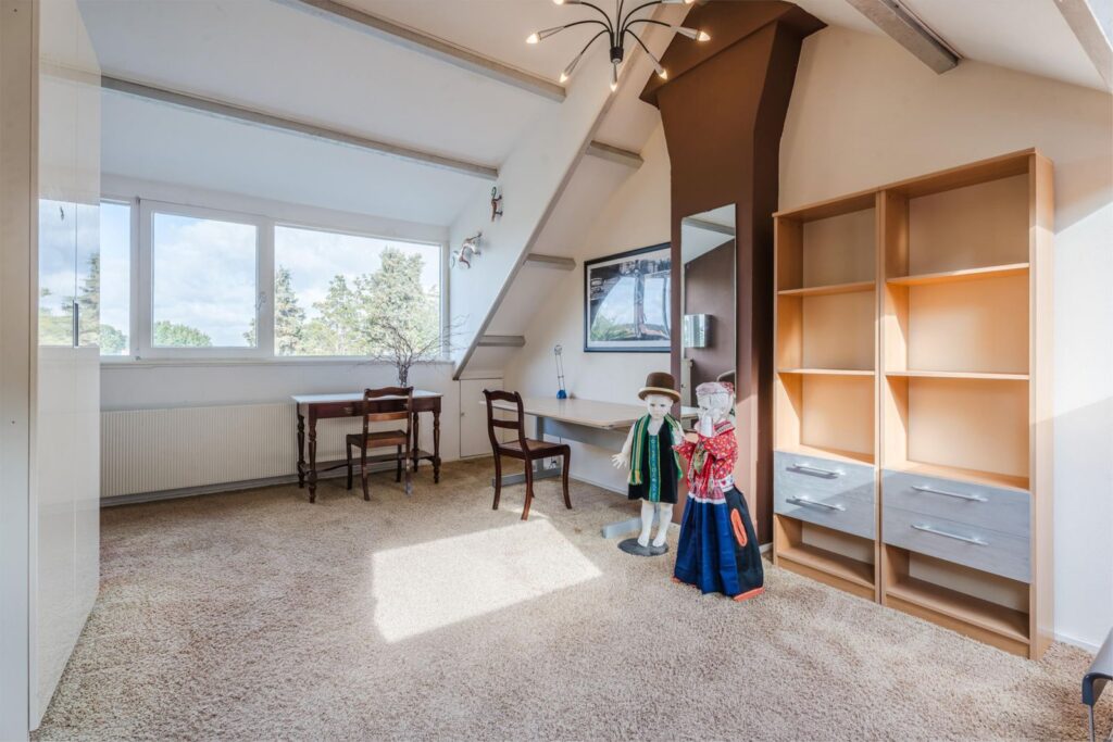 Een ruime overloop met trappenhuis naar de zolderverdieping, drie ruime slaapkamers en een grote badkamer. De badkamer is voorzien van een inloopdouche, wastafel, een derde toilet en een groot bad. Alle slaapkamers hebben toegang tot een balkon aan de voorkant en zelfs een groot terras aan de achterkant. Beide kamers op het westen zijn voorzien van elektrische rolluiken.