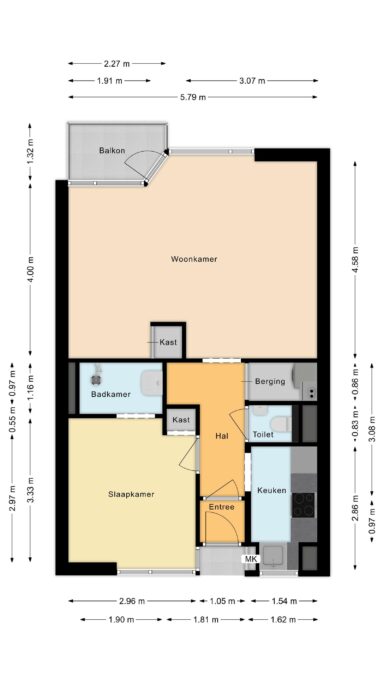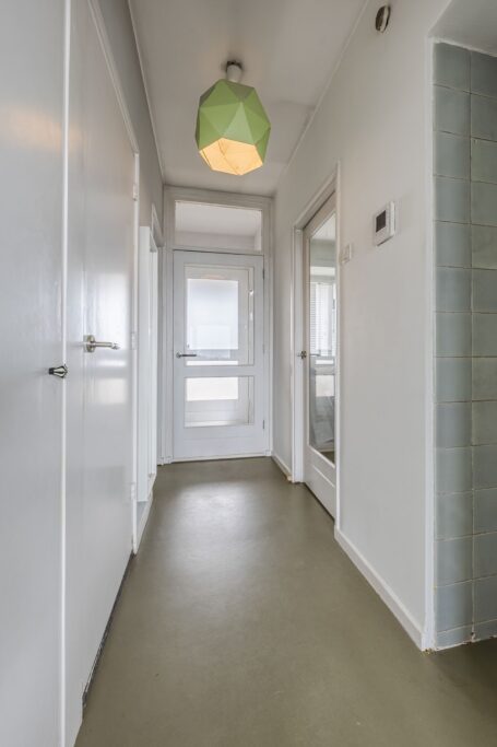 Entree middels hal met deur naar de gang. De gang met intercominstallatie biedt toegang tot de woonkamer, slaapkamer, de keuken en het toilet.