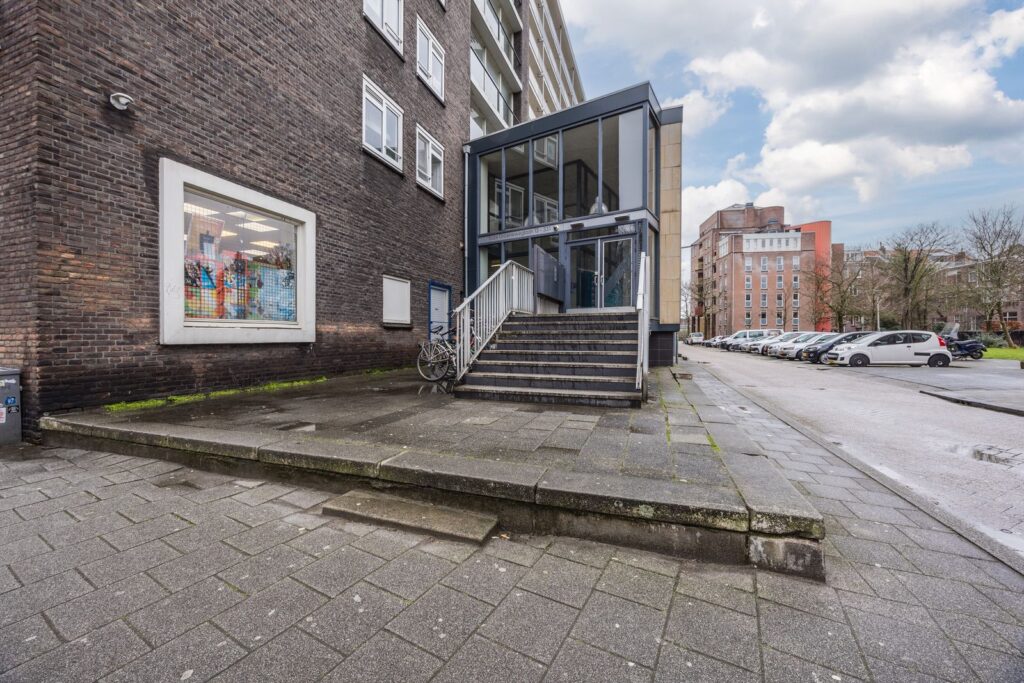 Via een centraal entree aan de zijkant van het gebouw zijn de lift en het trappenhuis bereikbaar.