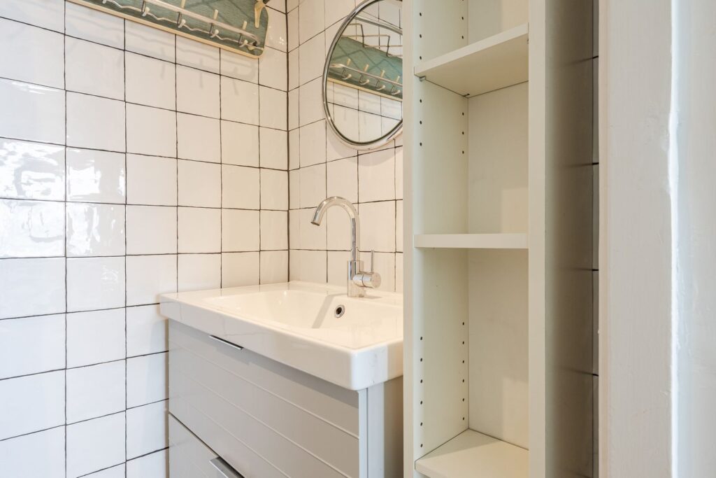 In de hal bevindt zich het separate toilet met wasfontein. Daarnaast heeft de hal nog een ruime bergkast met daarin de aansluiting voor de wasmachine en opstelling van de boiler. In de kelder bevindt zich nog de een eigen berging.