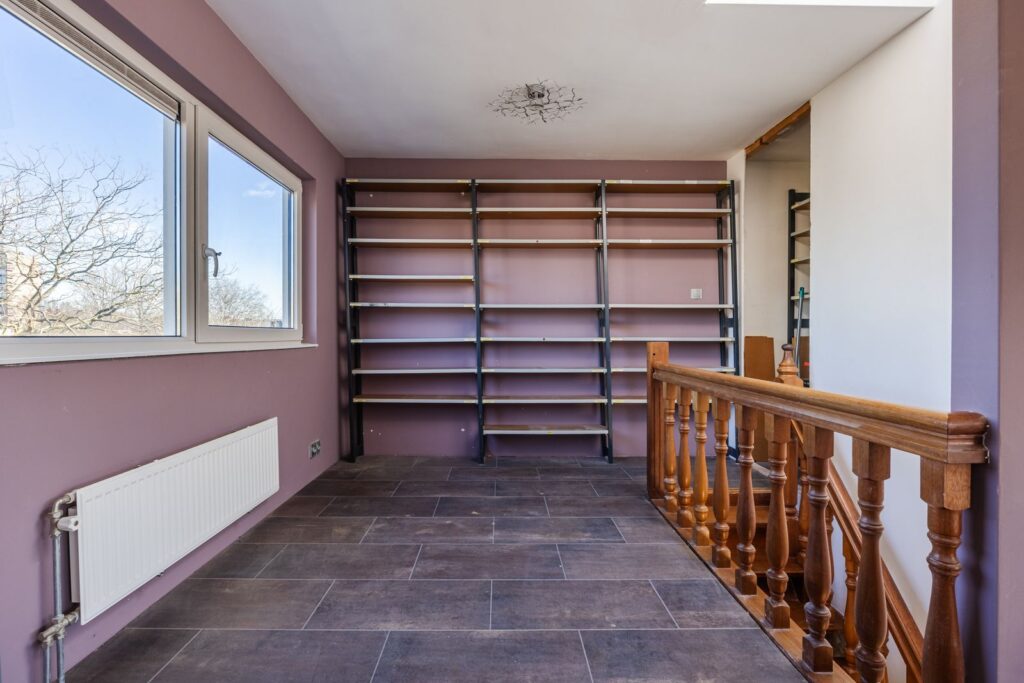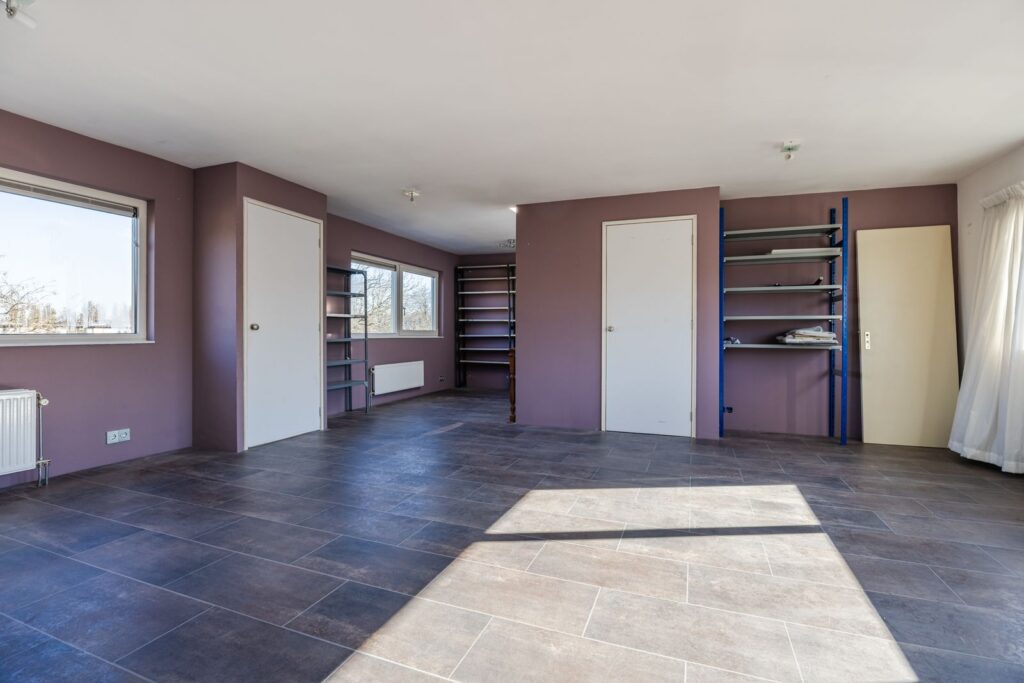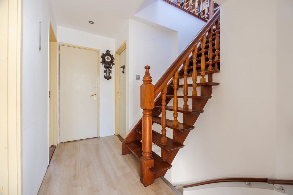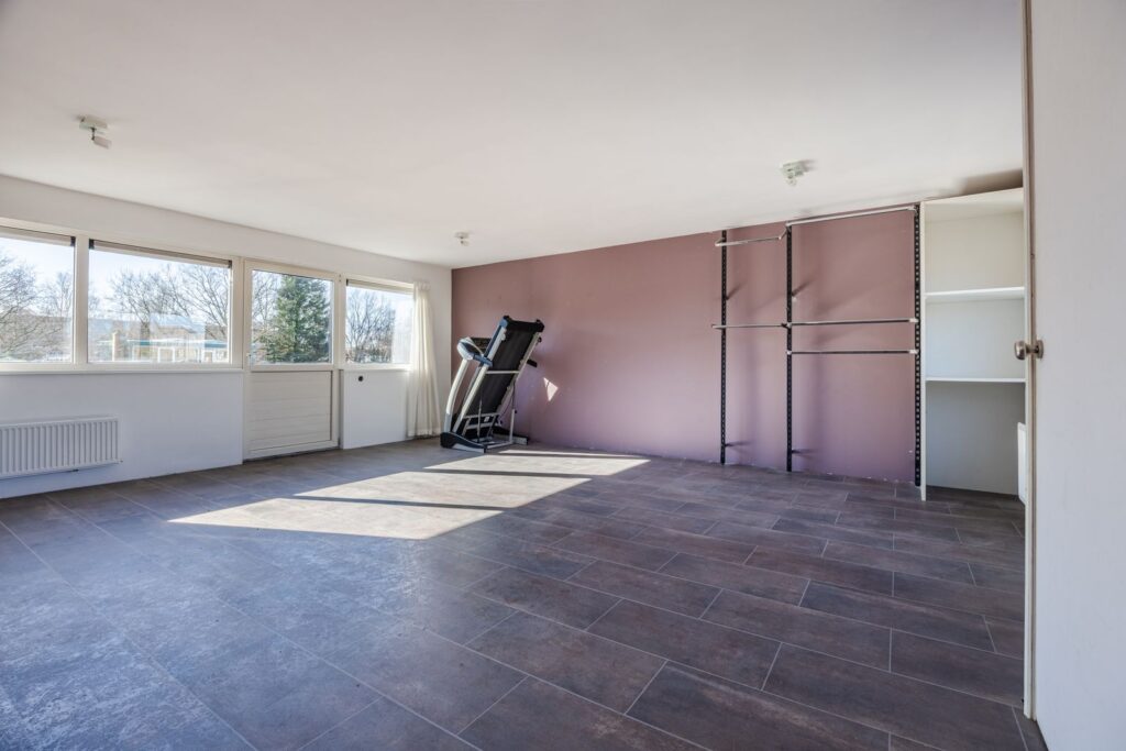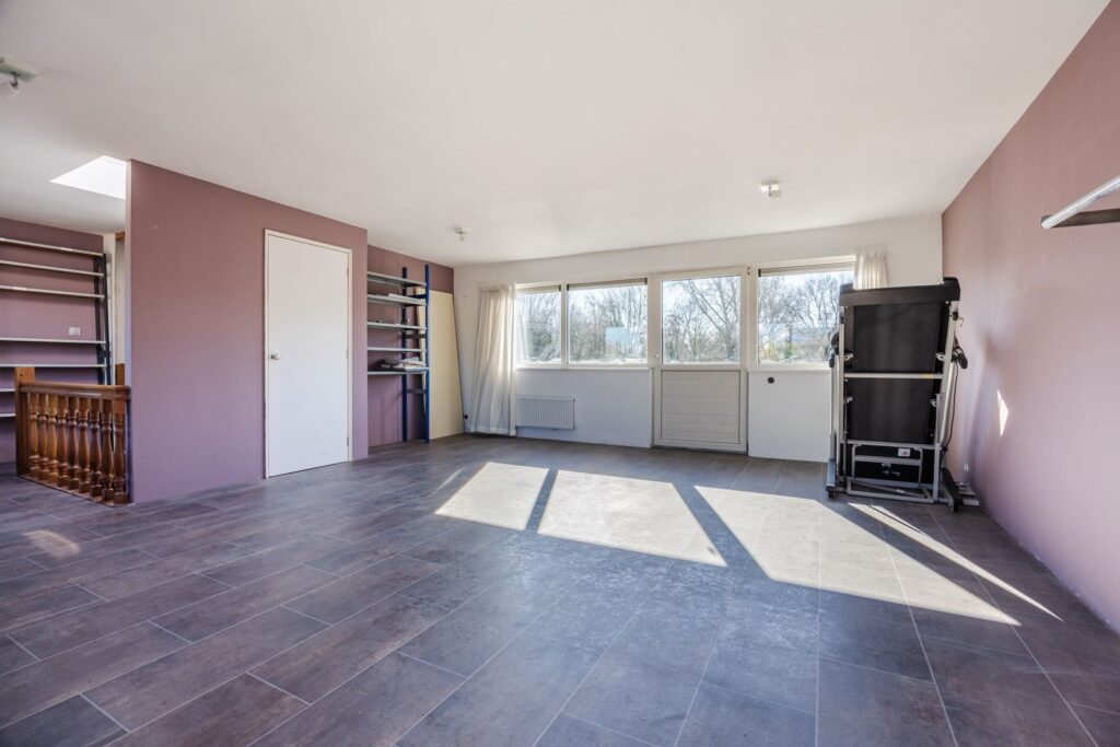 rechte hardhouten trap leidt naar een grote open ruimte voorzien van een laminaatvloer. Boven de trap bevindt zich een lichtkoepel voor extra lichtinval.. Hier bevindt zich ook de CVcombi ketel uit 2019. Deze ruimte kan naar eigen wens verder ingedeeld worden