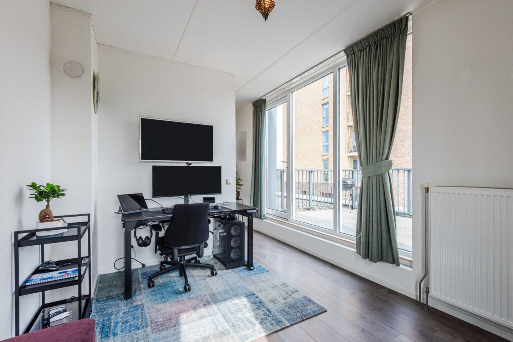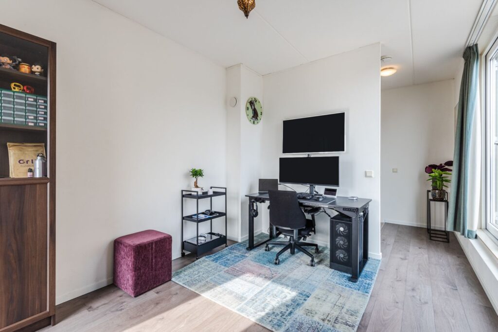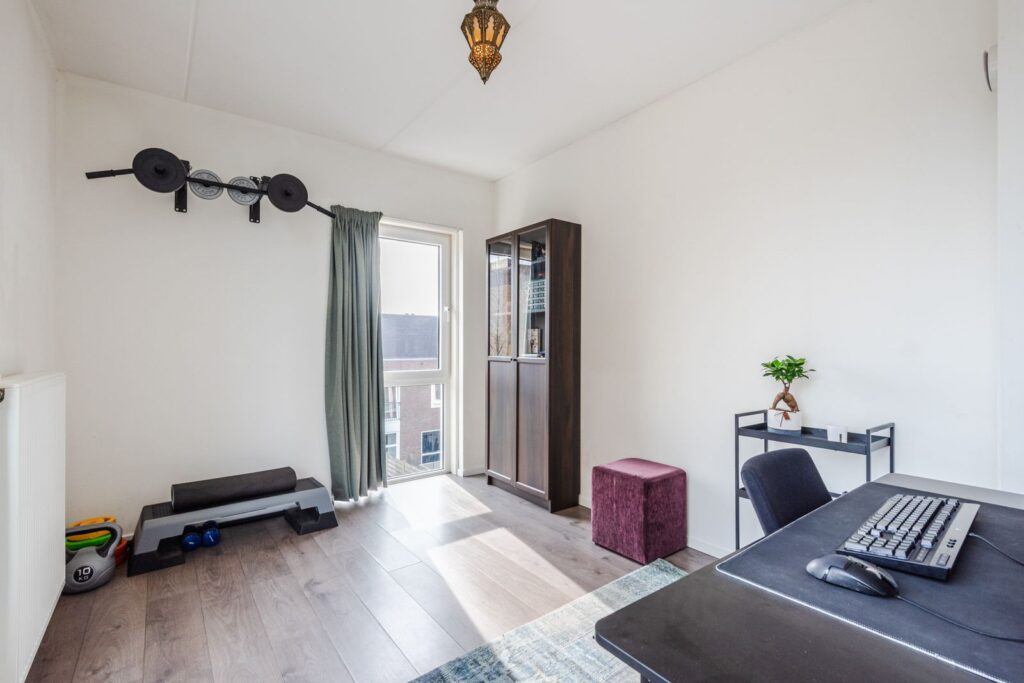 Riante slaapkamer /werkkamer met toegang tot het dakterras.