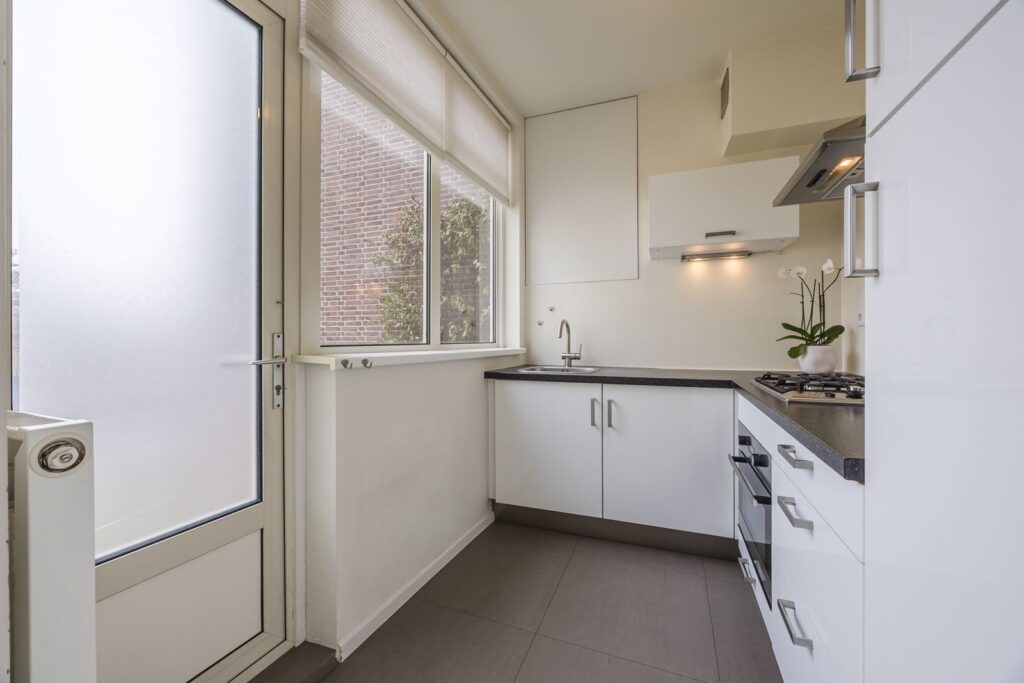 De moderne badkamer is voorzien van een inloopdouche, wastafelmeubel en handdoekradiator. Daarnaast beschikt de woning over een separaat toilet en een nette laminaatvloer die door het gehele appartement is doorgelegd. Extra comfort biedt de recente CV-ketel (Intergas HRE CW5, 2021). Als kers op de taart is er een eigen berging in de onderbouw én een gemeenschappelijke groene binnentuin waar je rustig kunt ontspannen.
