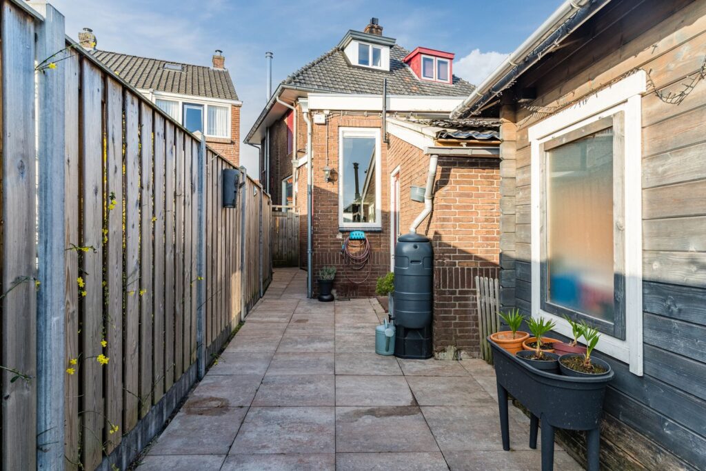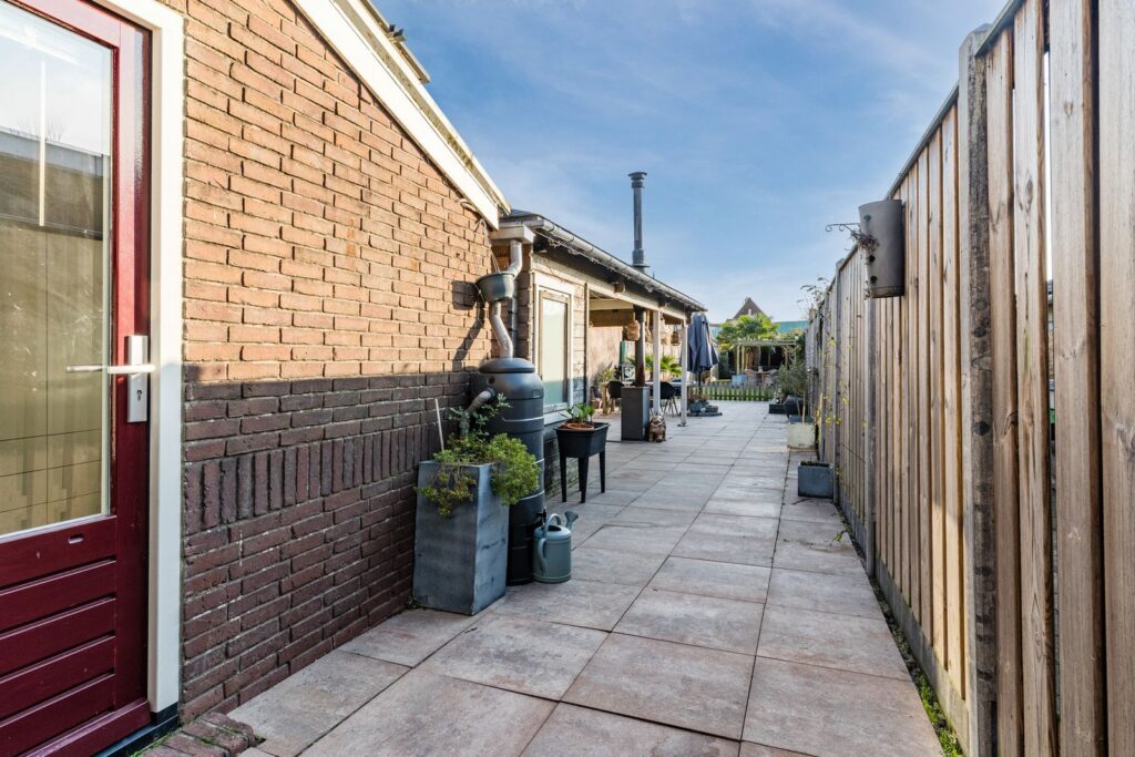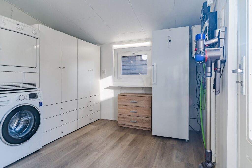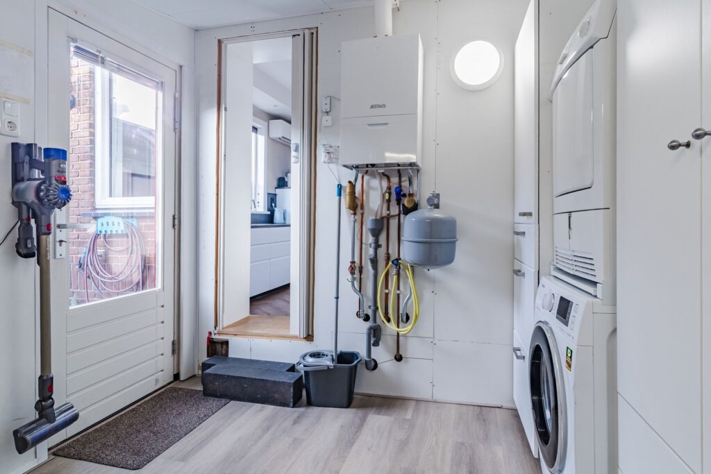 Vanuit de keuken komt men in de bijkeuken met combiketel (2022), meterkast, omvormer van de zonnepanelen(2021), wasmachine-/drogeraansluiting en een kastruimte. Toegang tot de achtertuin. Op het dak van de keuken en bijkeuken samen bevinden zich 15 zonnepanelen (2021).