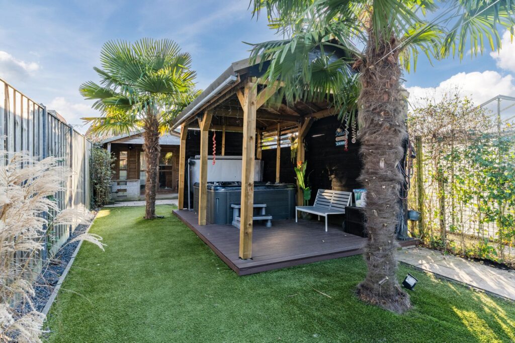 - Overkapping ca. 5,00 x 3,00 met 5 persoons jacuzzi en diverse elektra aansluitingen