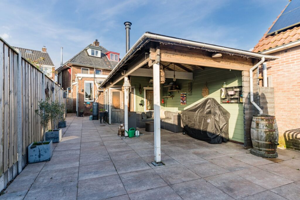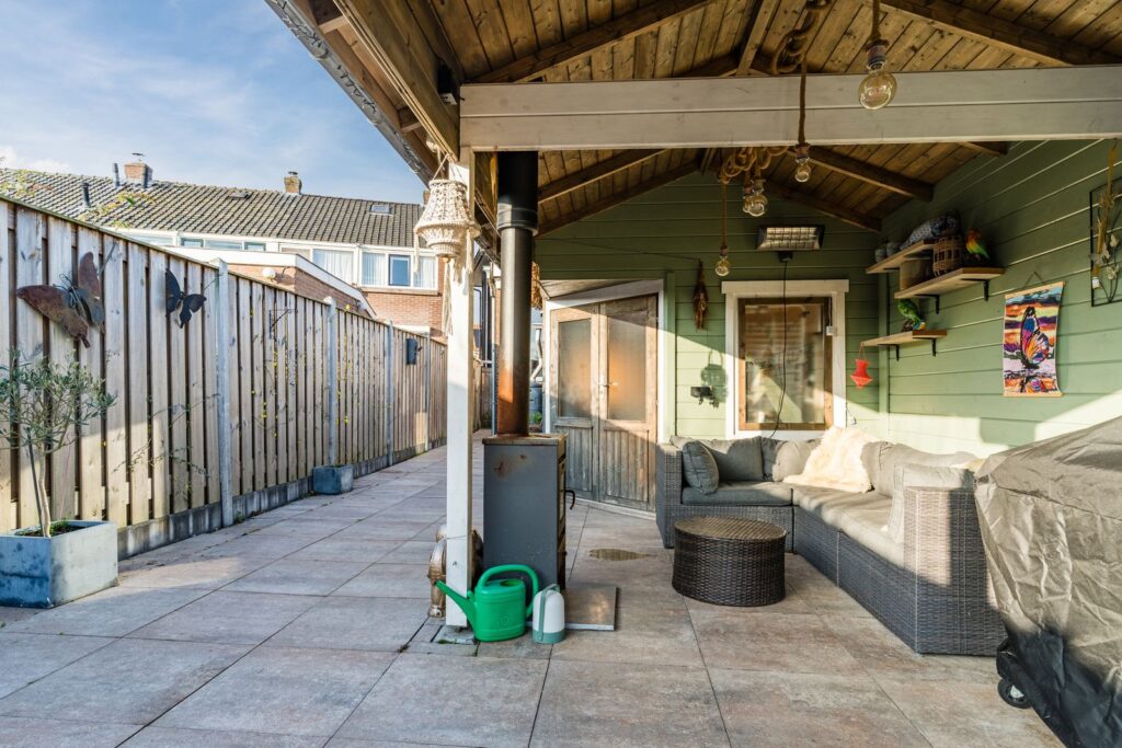 - Overkapping met berging ca 8,00x3,00, voorzien van elektra en houtkachel