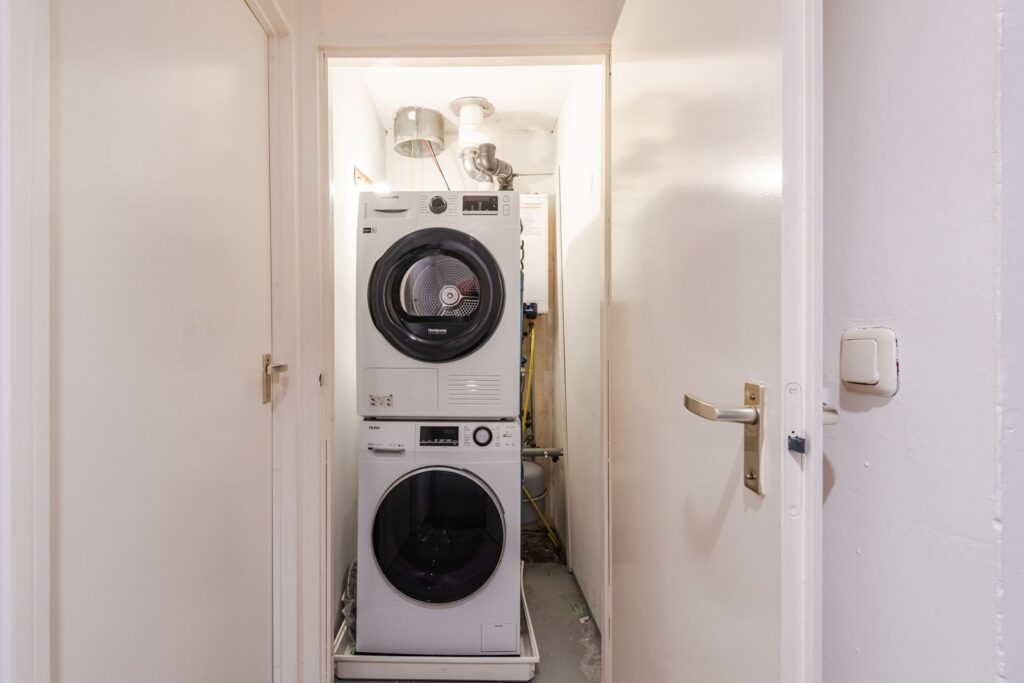 Overloop grenzend aan 3 slaapkamers waarvan 2 zeer ruim. Er is een aparte ruimte voor de cv-installatie, wasmachine en droger.