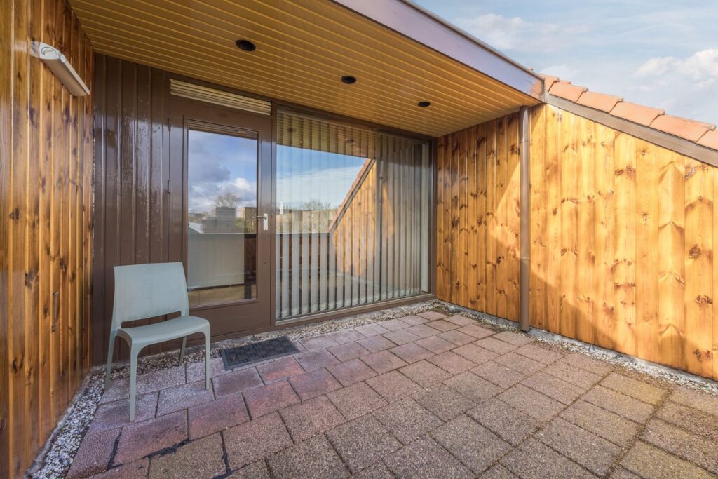 Aan de achterzijde van het perceel bevindt zich een vrijstaand bijgebouw van ca. 27 m². Deze ruimte is ideaal als praktijk, kantoor aan huis, atelier of gastenverblijf (niet bestemd voor zelfstandige bewoning of verhuur). Recent ingebouwde douche en toilet aanwezig.