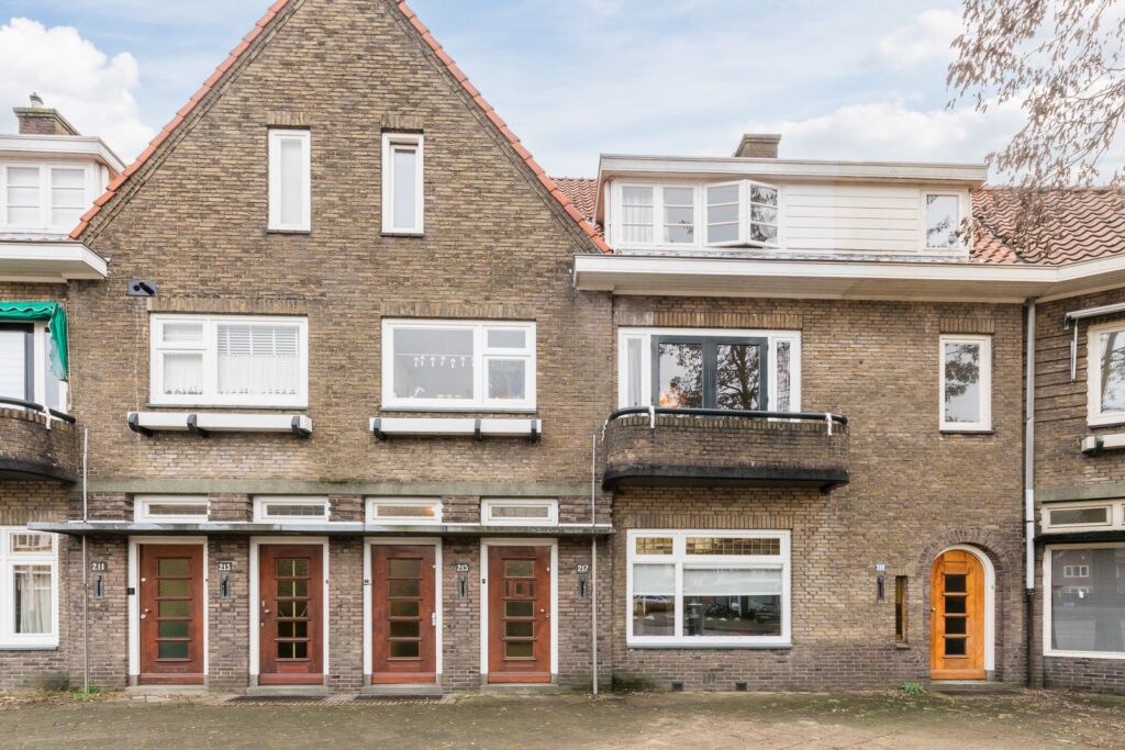 Via de trap kom je in de hal op de eerste verdieping. Rechts ligt de keuken, met een gasfornuis, afzuigkap, keukenblad en spoelbak. Het grote raam geeft veel lichtinval en een ruim uitzicht over het kruispunt, de jaren '30 wijk in. Op deze eerste verdieping vind je twee kamers die op dit moment beide worden gebruikt als woon en leefruimte. De tussenwand kan eruit gehaald worden zodat je een ruime living hebt. In beide kamers vind je een inbouwkast, ideaal voor het opbergen van servies en andere spullen. Aan de voorzijde zit een balkon waar het in de zomer heerlijk toeven is met een kop koffie of een glas wijn.