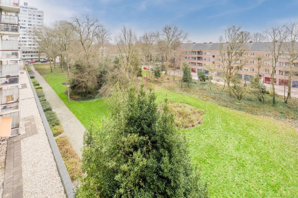 De woonkamer heeft door de raampartij veel lichtinval. De moderne keuken is zeer compleet en luxe. Deze is voorzien van een kokend waterkraan, witte inductie kookplaat, afzuigkap, vaatwasser, koelkast, diepvries en een witte SMEG-oven. Ook heeft de keuken heel veel opbergruimte. De woonkamer geeft u toegang tot het balkon, welke is gelegen op het zonnige zuiden, met prachtig uitzicht op de boomrijke omgeving. Middels de slaapkamer of de keuken komt u de badkamer in welke beschikt over een douche, toilet en wastafelmeubel. De nieuwe elektrische boiler van het merk Daalderop is recent vervangen in december 2025. Op de begane grond bevindt zich een privé berging. Ideaal voor uw fiets of om te dienen als opbergruimte.