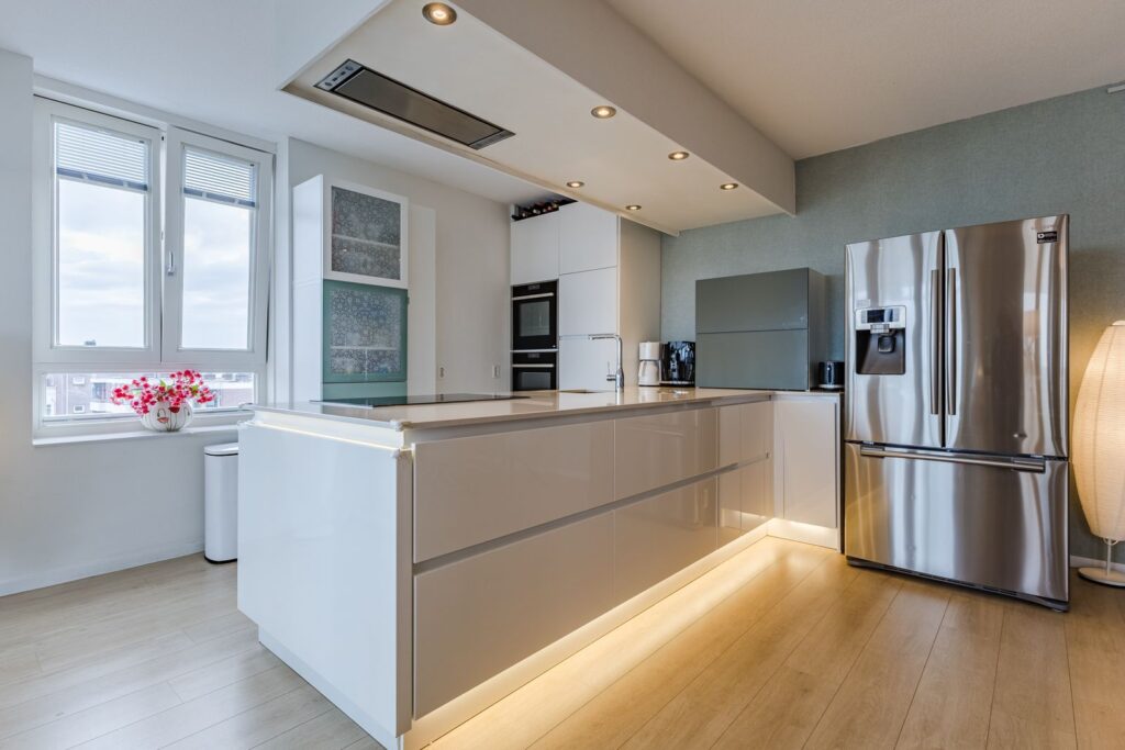 Hoogwaardige keuken met apparatuur van Neff, Plasmamade afzuiging en Amerikaanse koelkast