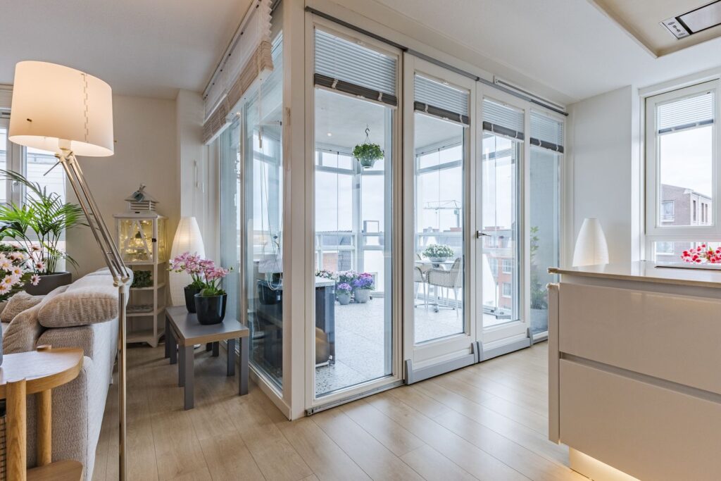 Een absoluut pluspunt is het royale beglaasde terrasbalkon van ca. 10,6 m². Dankzij de volledig te openen glaspanelen aan beide zijden – die als deuren functioneren én in zijn geheel weg te schuiven zijn – kan deze ruimte volledig worden aangepast aan het seizoen.?Gesloten vormt het een comfortabele extra kamer; geopend haal je buiten optimaal naar binnen. Een zeldzame en bijzonder waardevolle toevoeging aan het wooncomfort.