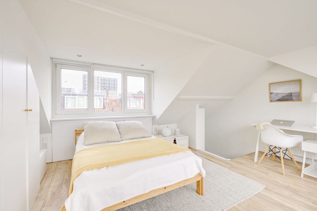 De zolderverdieping is in 2021 vergroot met dakkapellen aan voor- en achterzijde en biedt ruimte voor een derde ruime slaapkamer. Dankzij de vele raampartijen is het hier heerlijk licht. De kamer is strak afgewerkt en voorzien van maatwerkkasten.