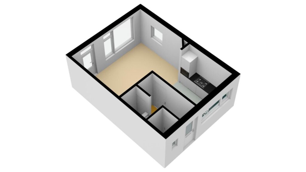 Overloop met toegang tot 2 kamers en de badkamer en een aparte wasruimte met aansluitingen voor wasmachine en droger. De ruime slaapkamer aan de achterzijde is voorzien van inbouwkasten. Aan de voorzijde ligt een tweede kamer die ideaal is als werkkamer, kinderkamer of logeerkamer. De badkamer is uitgerust met een inloopdouche en wastafelmeubel.
