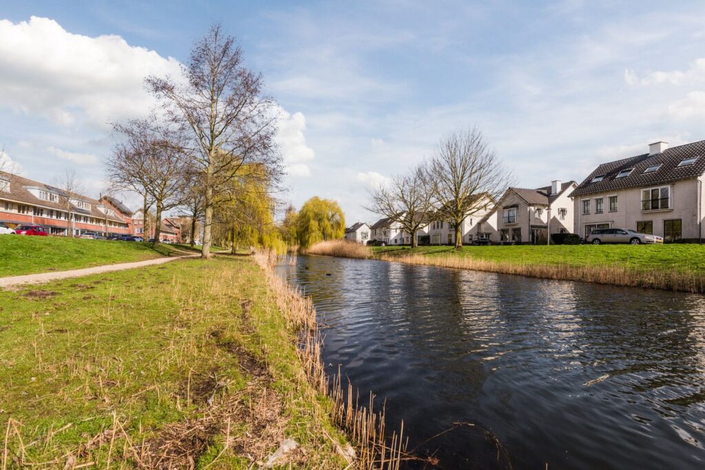 aan rustige weg, aan water, in woonwijk, vrij uitzicht