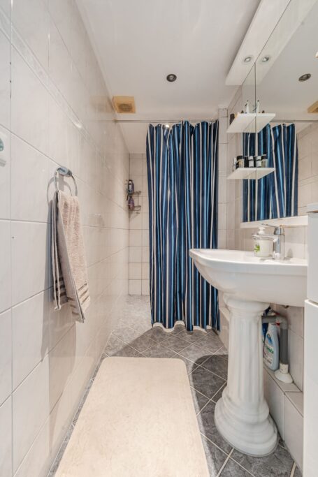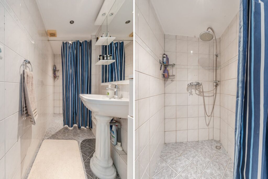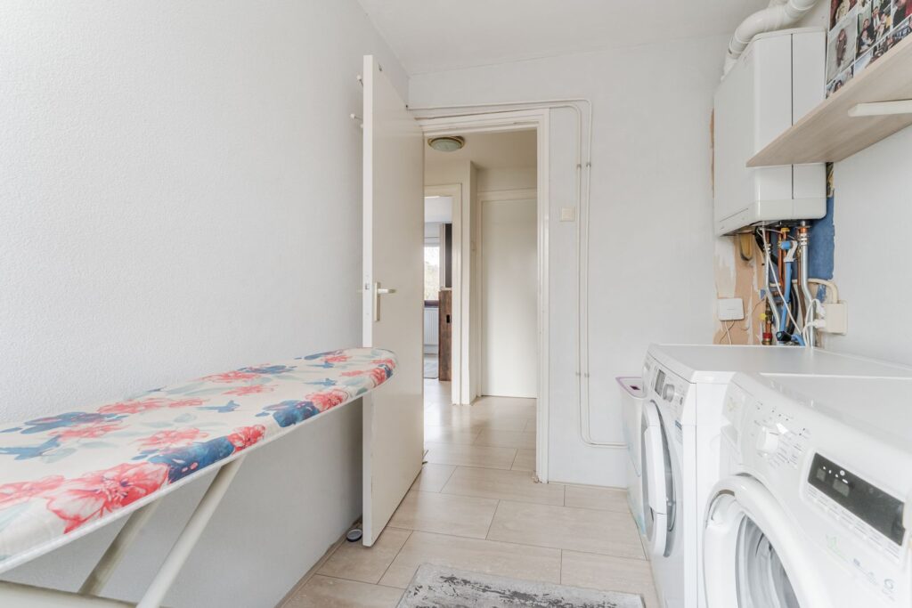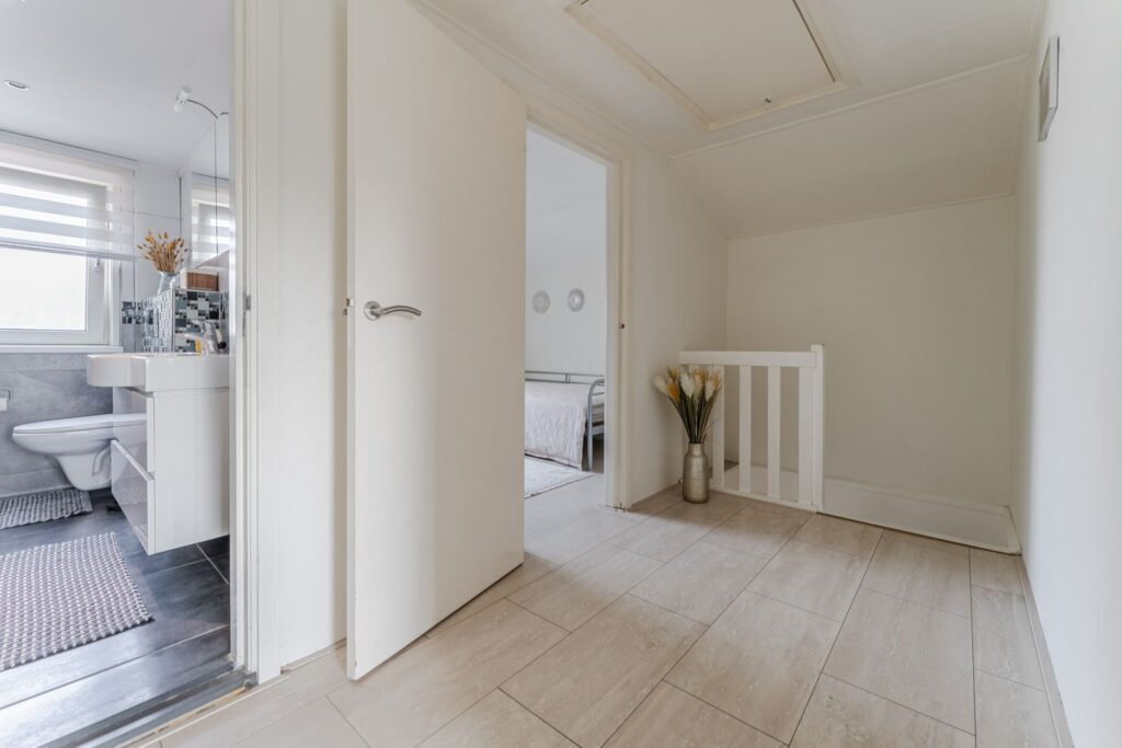 De overloop en maar liefst 4 kamers waarvan er 1 in gebruik is als waskamer. 2 kamers aan de voorzijde en 2 kamers aan de tuinzijde. De badkamer is voorzien van een douche en wastafel.