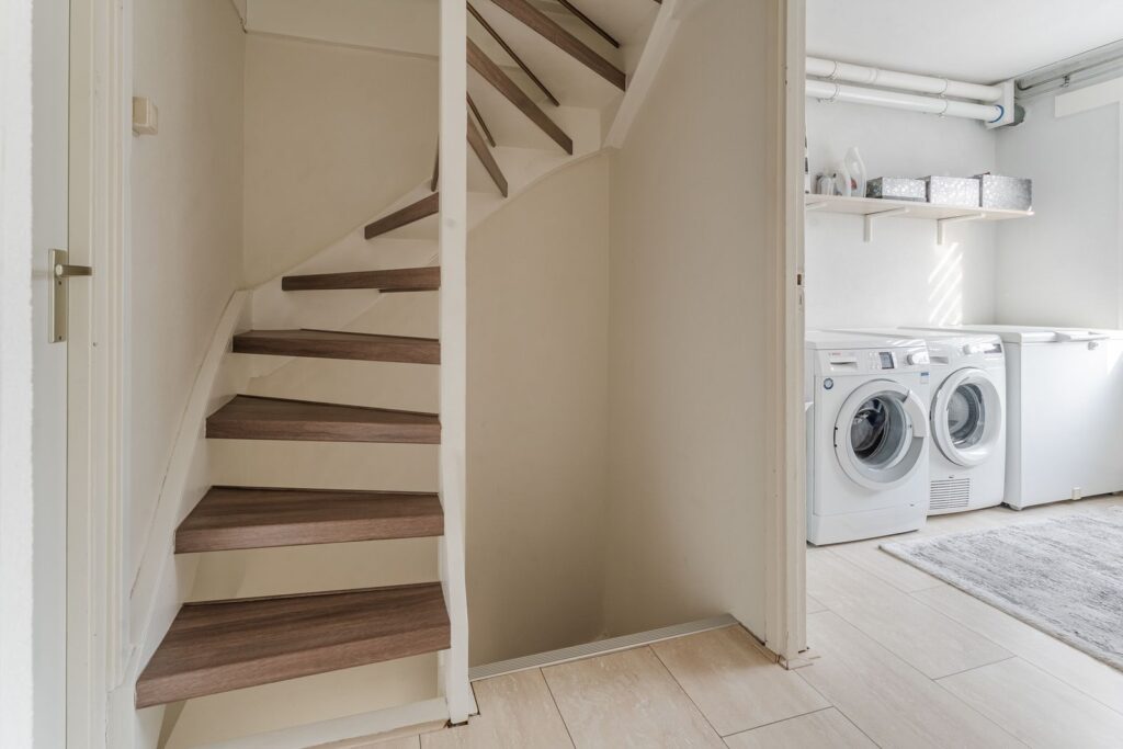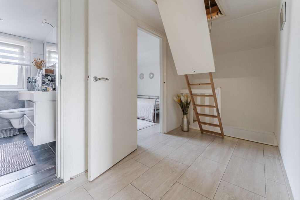 Via een vlizotrap bereik je de vliering met veel extra opbergmogelijkheden.