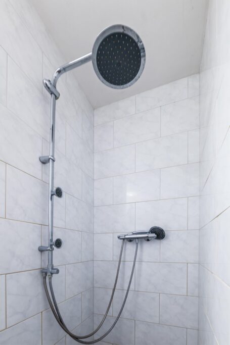 ruime overloop, 4 slaapkamers respectievelijk circa 6, 7, 9 en 13m2, badkamer met moderne douche en wastafel.