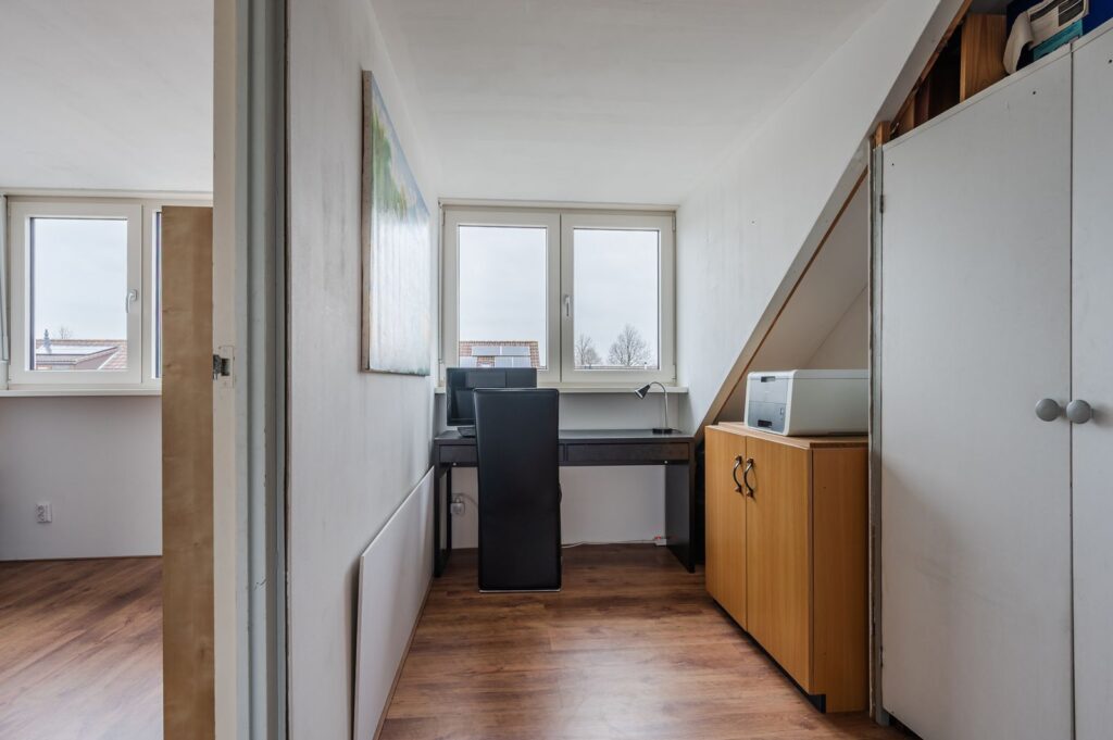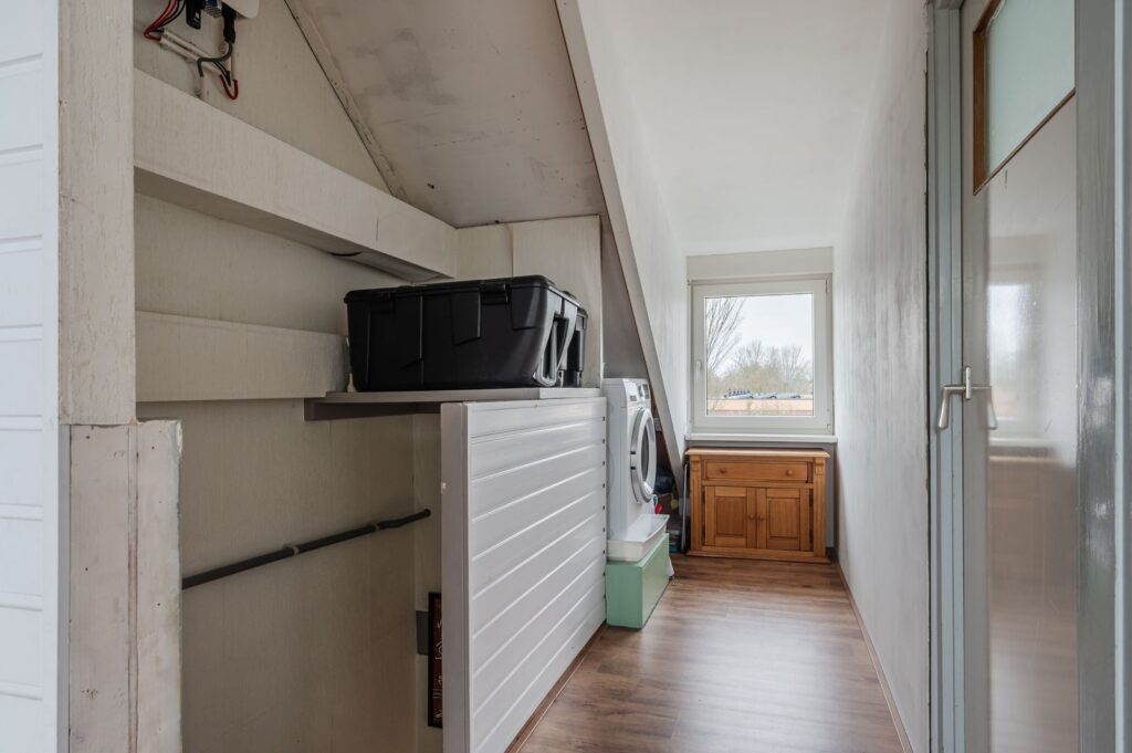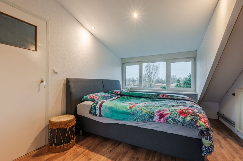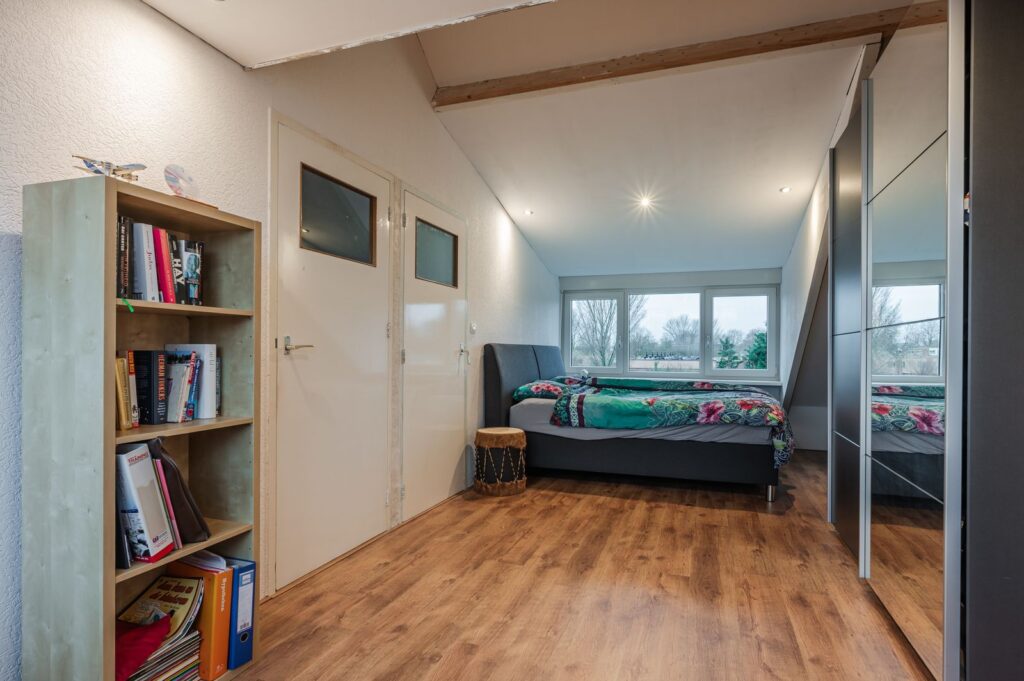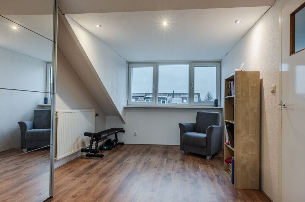 Vanuit de overloop heeft u toegang tot de cv-ketel, centrale ventilatie unit, opstelplaats voor de wasmachine en droger en de royale slaapkamer. Door de 2 dakkapellen over de hele breedte is hier een zeer ruime lichte kamer ontstaan welke is te gebruiken als slaapkamer of kantoorruimte. Ook is hier vrij eenvoudig een extra slaapkamer te realiseren. De dakkapellen zijn voorzien van HR++ glas hetgeen goed isoleert maar ook geluiddicht is