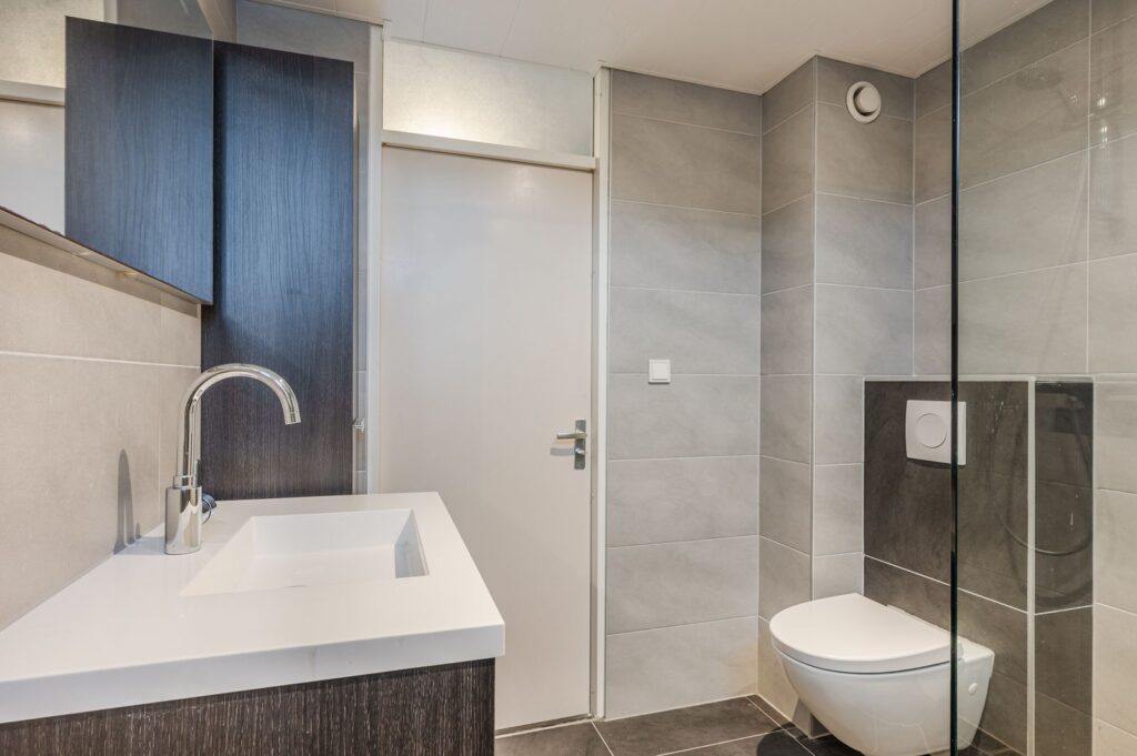 Vanuit de overloop heeft u toegang tot drie ruime slaapkamers en de moderne badkamer. 2 slaapkamers zijn voorzien van een nette laminaatvloer. De moderne badkamer is ingericht met plafondhoge wandbetegeling, een inloopdouche, een buitenraam, een wastafelmeubel met separate kast, design-radiator, spiegel met verlichting en een vrijhangend closet. Het plafond in de badkamer is verlaagd en voorzien van inbouwverlichting.