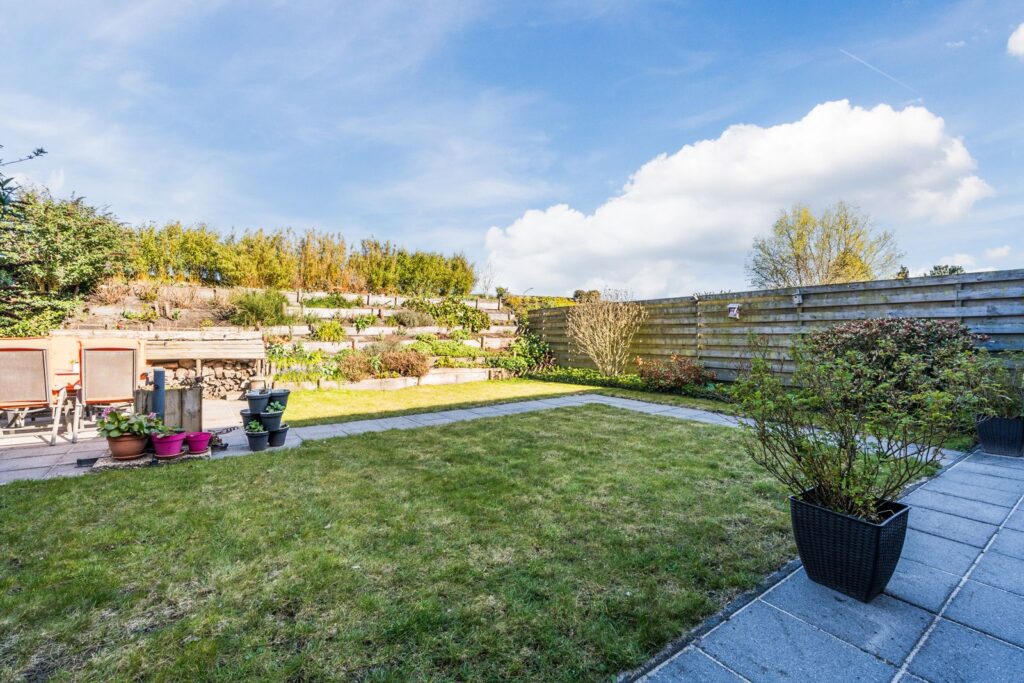 De woning beschikt over een aangebouwde stenen garage, bijkeuken en een royale oprit met ruimte voor meerdere auto’s. In de diepe achtertuin, met een ligging op het oosten, kun je optimaal genieten van de ochtend-, middag- en avondzon.