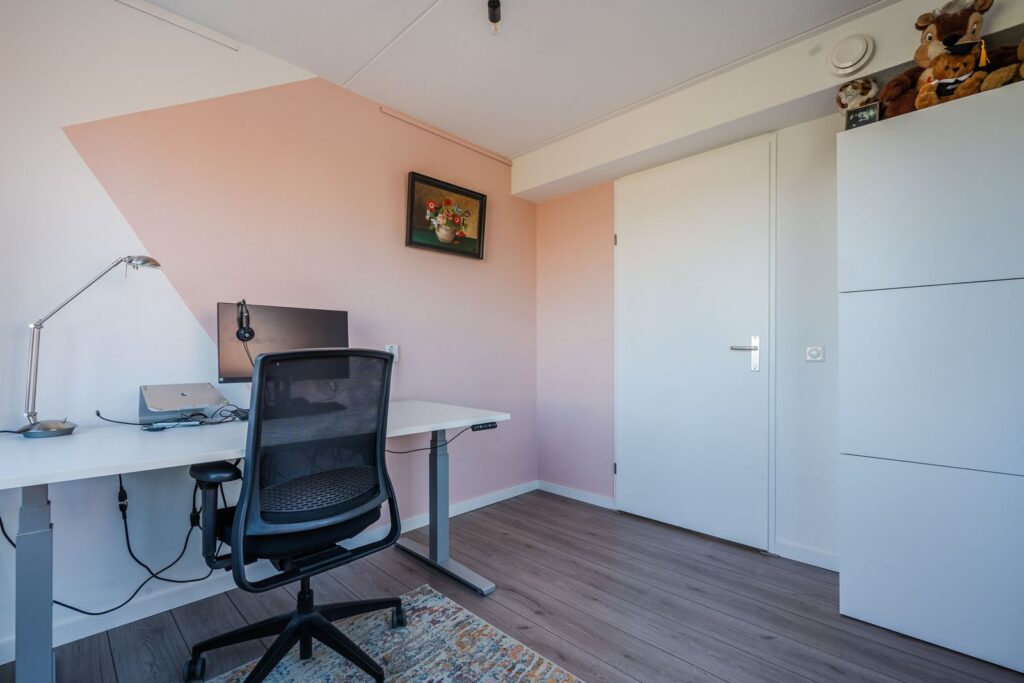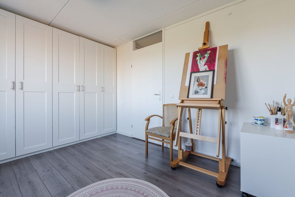 De tweede verdieping heeft een grote open ruimte die gebruikt kan worden als thuiswerkplek. Een vierde slaapkamer is eventueel eenvoudig te realiseren. Ook bevind zich een afgesloten berging en een groot dakterras op deze verdieping.