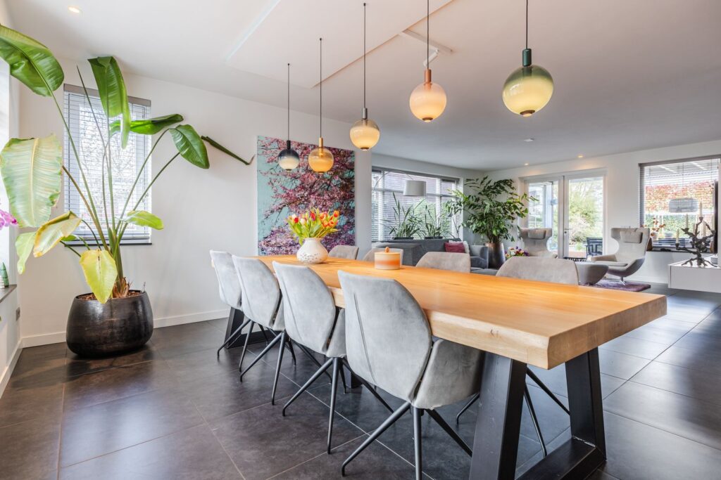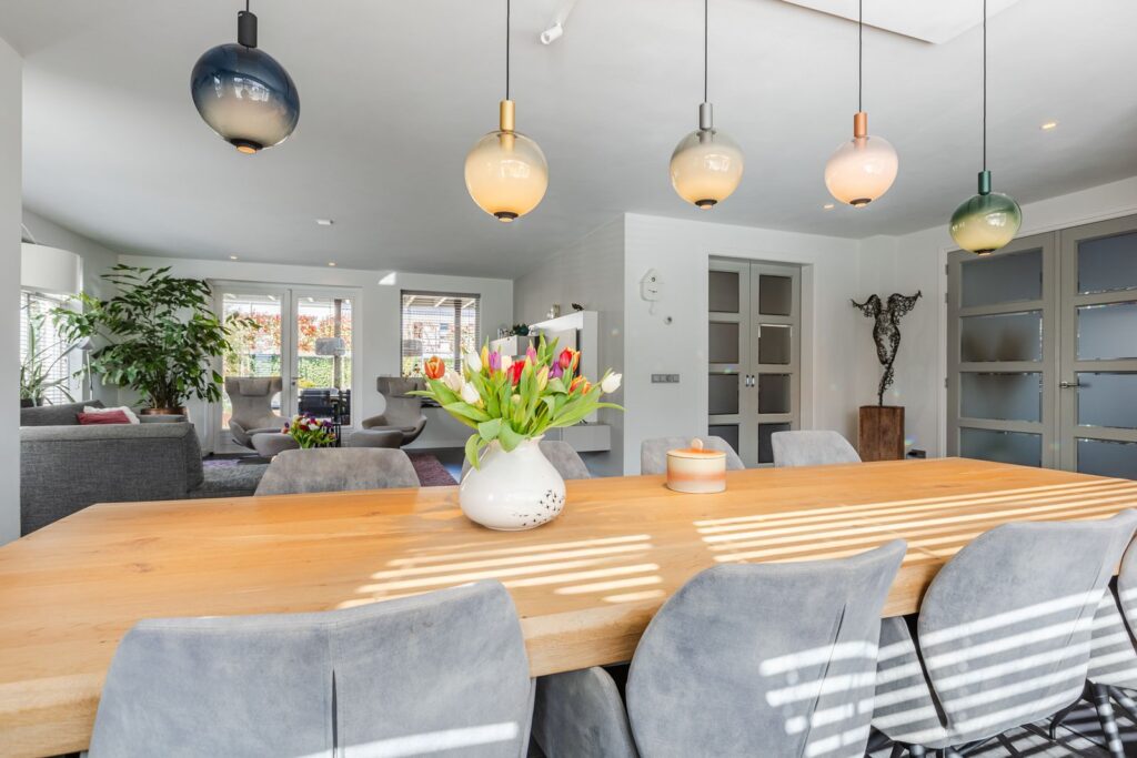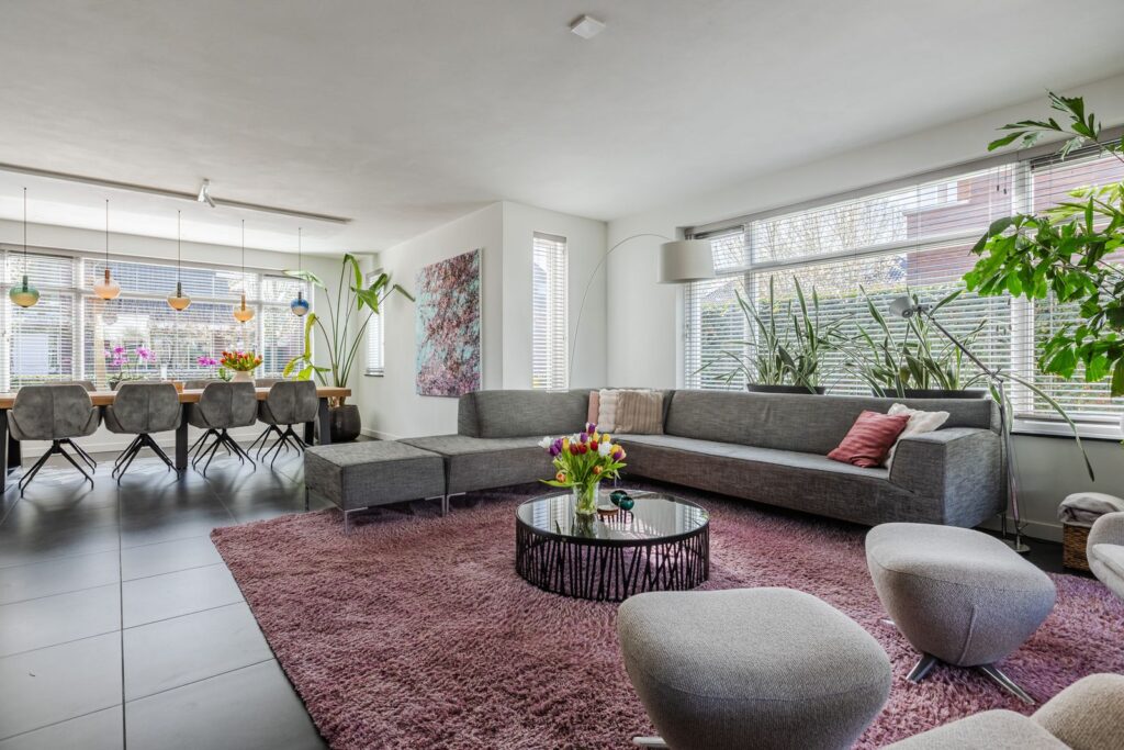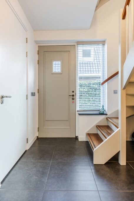 Via de ruime hal/entree met toilet en trapopgang bereik je middels dubbele deuren de lichte woon-/eetkamer.