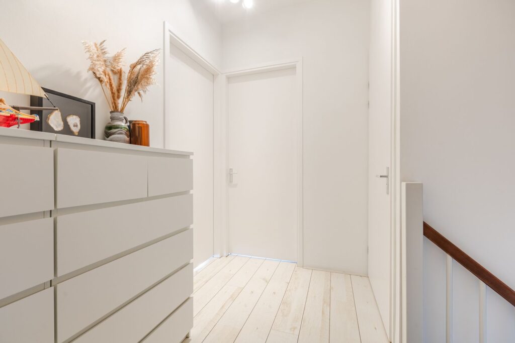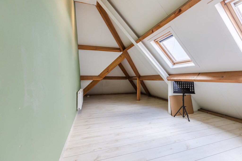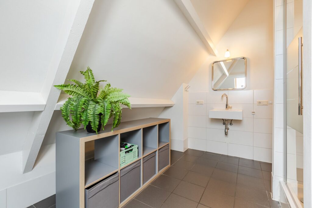 Op de voorzolder bevindt zich de installatie voor de ventilatie en toegang tot de vliering.
