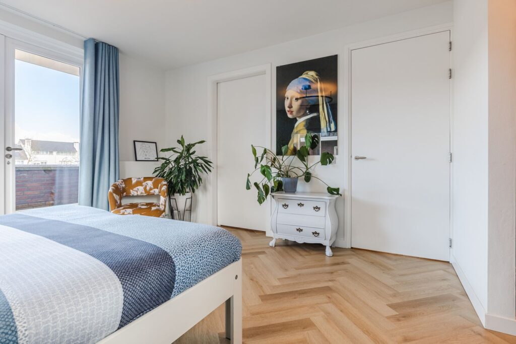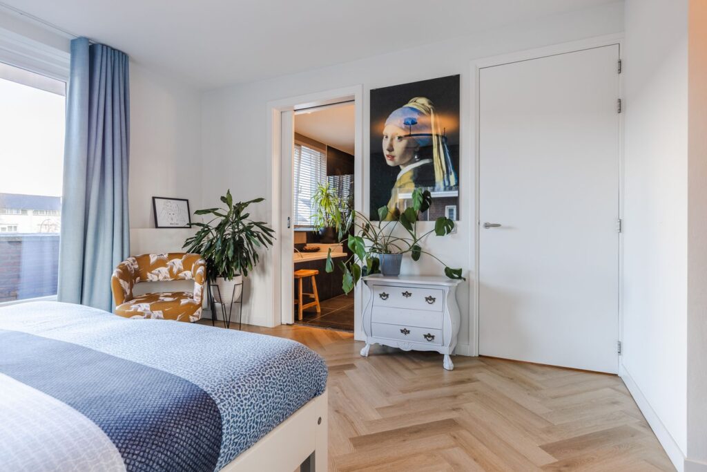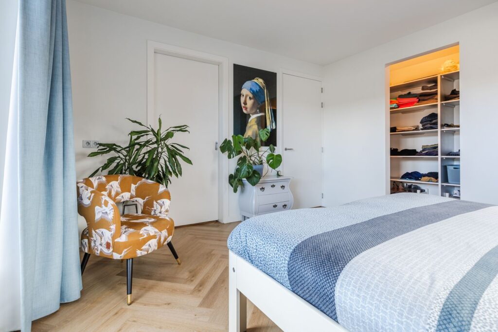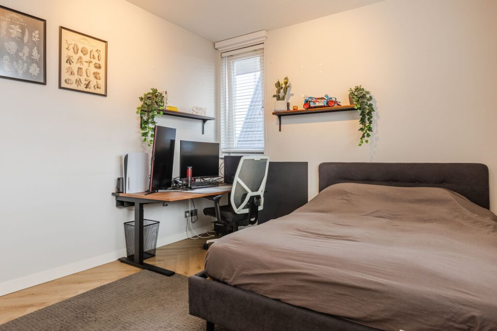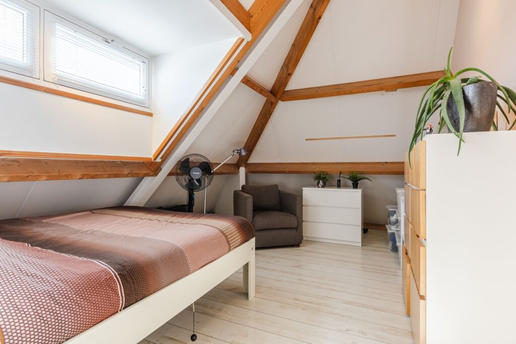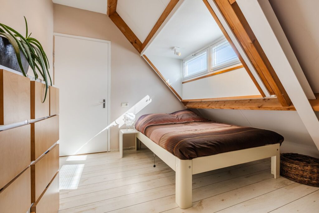 De slaapkamer aan de voorzijde is voorzien van een dakkapel. De slaapkamer aan de achterzijde heeft twee Velux dakramen