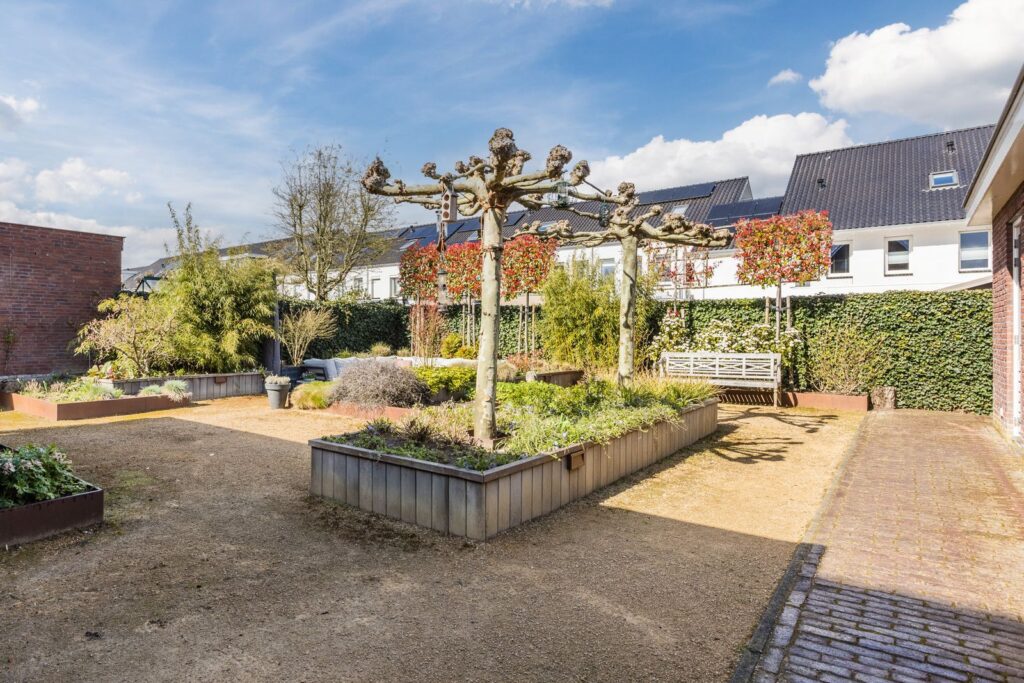 De onderhoudsvriendelijke tuin is in 2022 aangelegd met diverse beplanting en verlichting. De achtertuin is volledig afgesloten en biedt diverse zithoekjes waaronder een zitkuil.