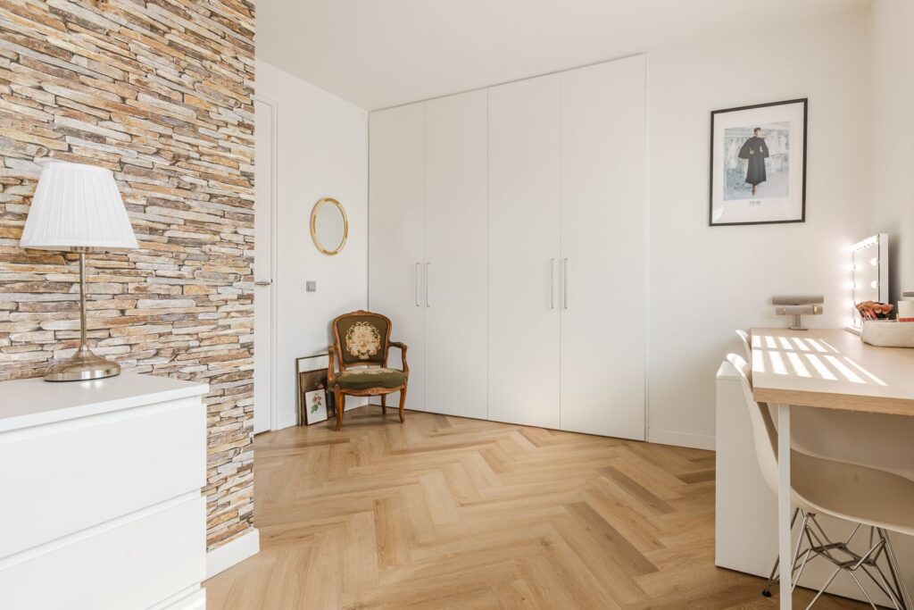 De gehele verdieping is voorzien van PVC in visgraatmotief.