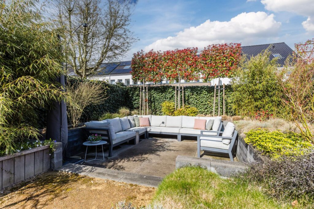 De tuin is te bereiken via openslaande deuren vanuit zowel de woon-/eetkamer als de keuken.