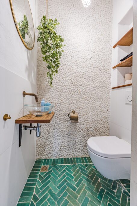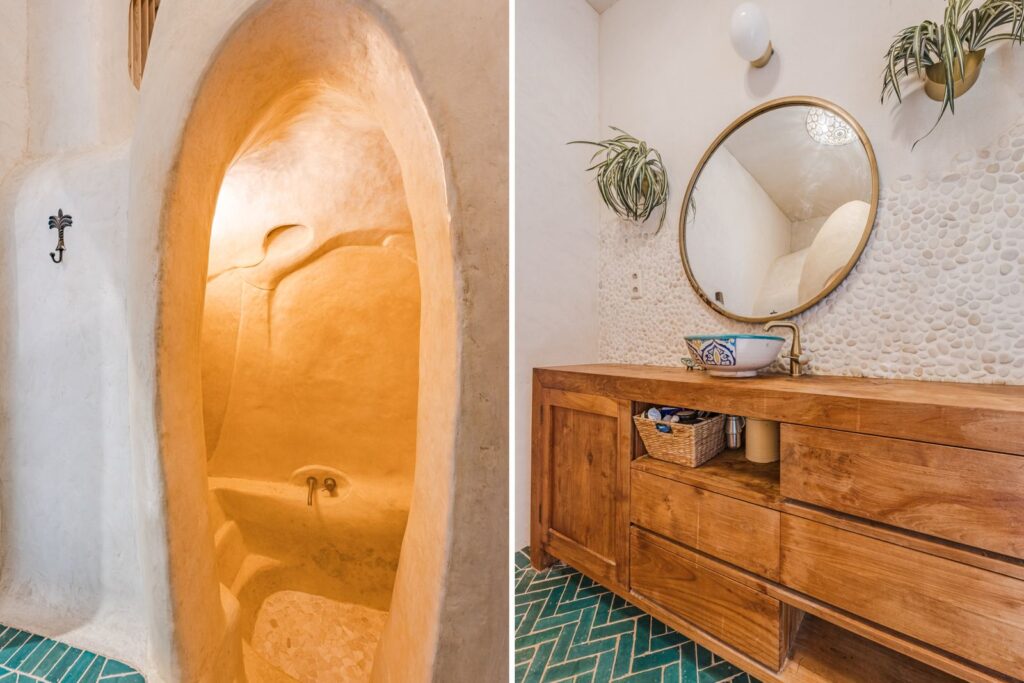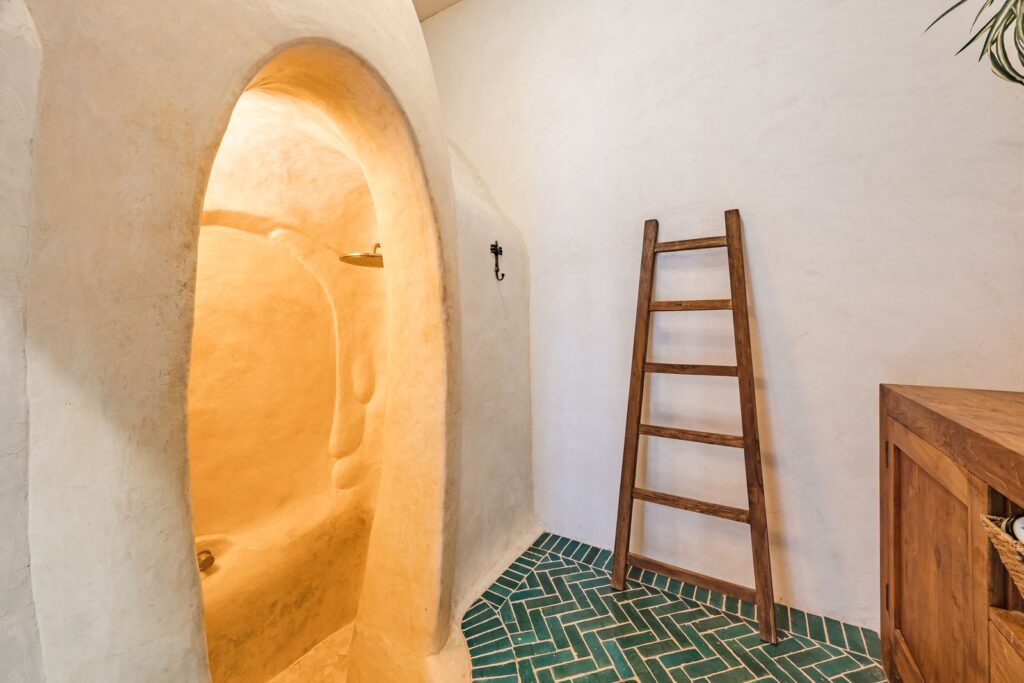 Hamam douche - de inloop douche/badcombinatie zijn vormgegeven door een kunstenaar en volledig afgewerkt met tadelakt; een ecologisch, waterdicht stucwerk. De ruimte maakt douchen en zelfzorg tot een geheel eigen - ontspannen beleving,