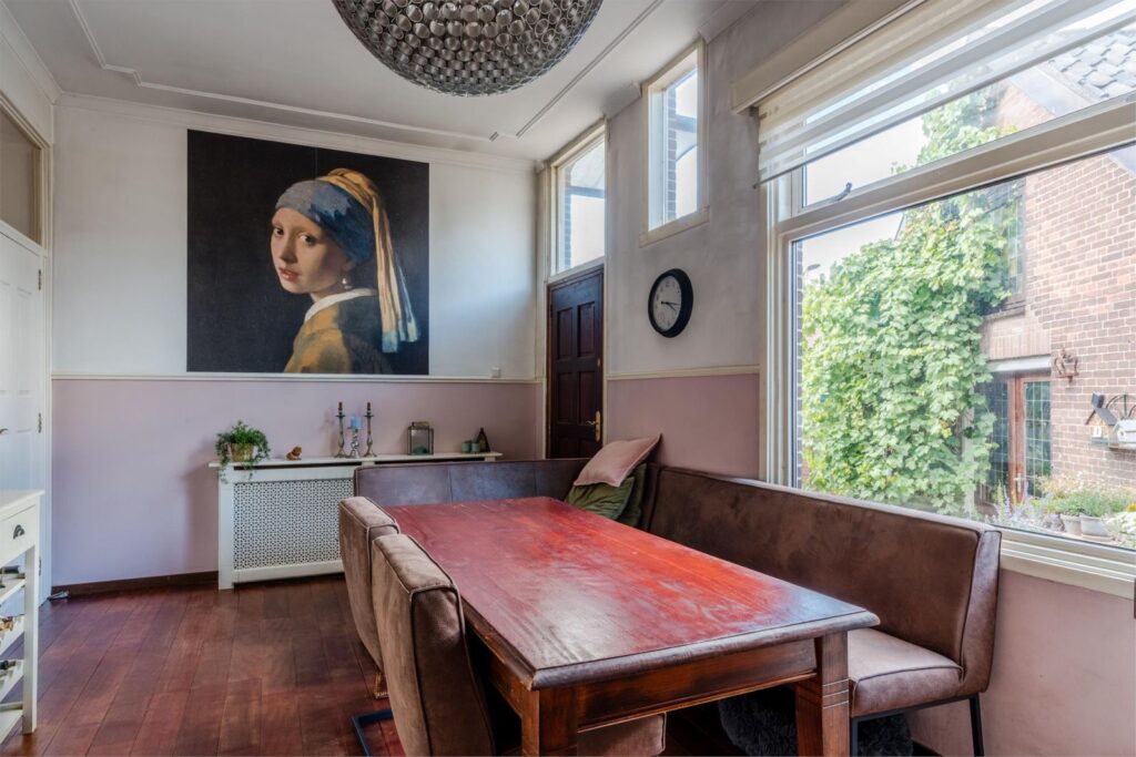 De woning is ooit ontstaan uit twee panden die zijn samengevoegd tot één groot familiehuis. Dat geeft extra charme én flexibiliteit: zo beschikt u over twee voordeuren en twee directe uitgangen naar de tuin. Perfect voor dubbele bewoning, praktijk aan huis of een royale kantoorruimte.
