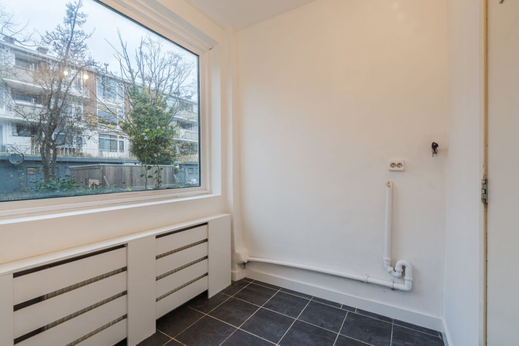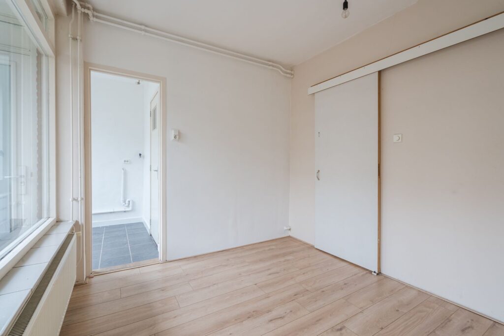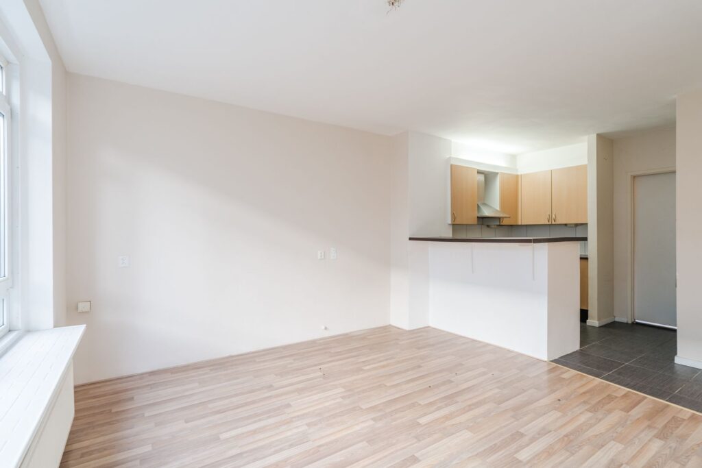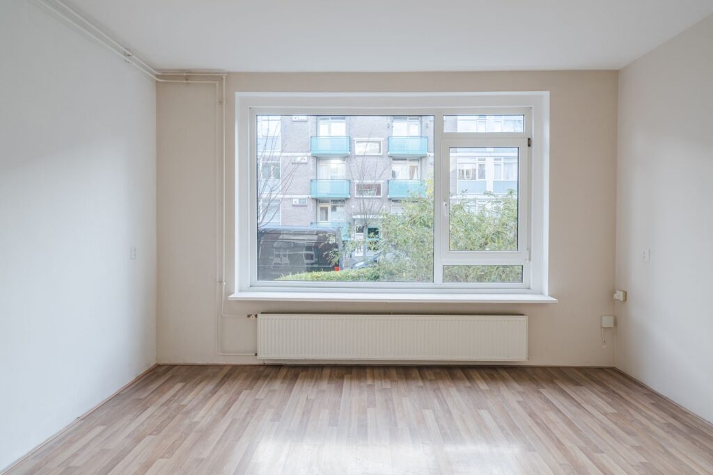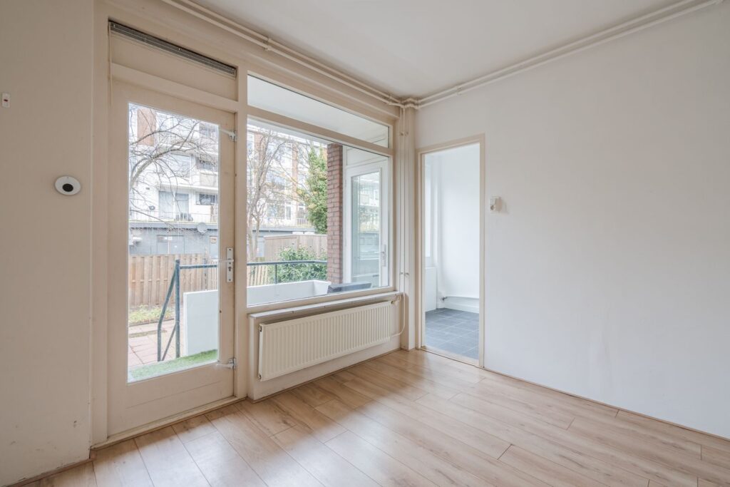 Stap binnen in de lichte woonkamer, waar de grote ramen zorgen voor voldoende daglicht en ontdek de mogelijkheden die deze ruimte biedt en kijk uit op je eigen voortuin.