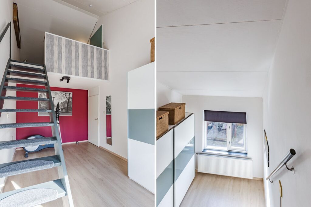 2e verdieping: via één van de slaapkamers aan de achterzijde, is via een rechte trap de entresol te bereiken. Hier kunt u nog een bed kwijt of een soort studeer of werkruimte maken, aansluitend een bergruimte met opstelling van de C.V. ketel.