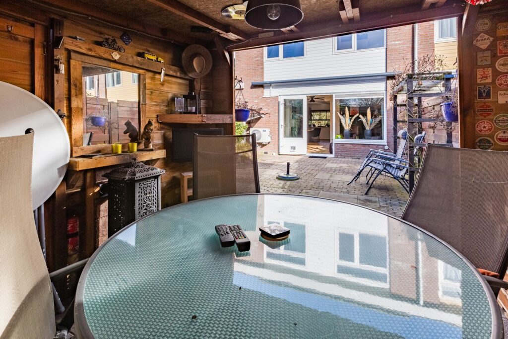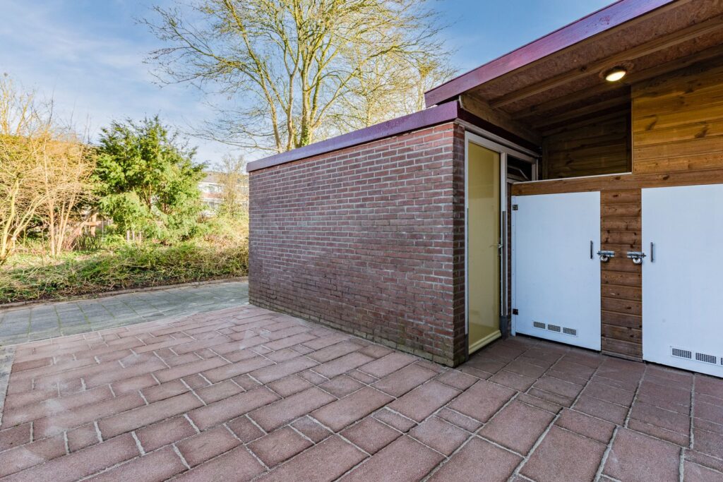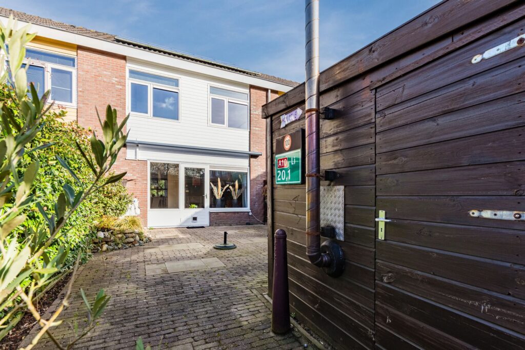 Aan de voorzijde nadert u de woning via de keurig bestrate voortuin met vrijstaande stenen berging. De achtertuin is netjes aangelegd en gelegen op het zonnige zuiden. Om verkoeling te creëren in de tuin is er tevens een groot elektrisch zonnescherm. (Z.G.A.N. 5m breed)