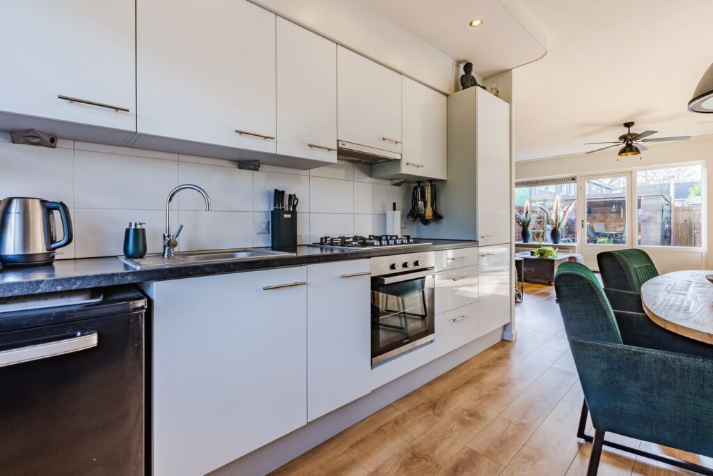 Er zijn 3 ruime slaapkamers. Met name de slaapkamers aan de achterzijde zijn ruim door het hoge schuine plafond.