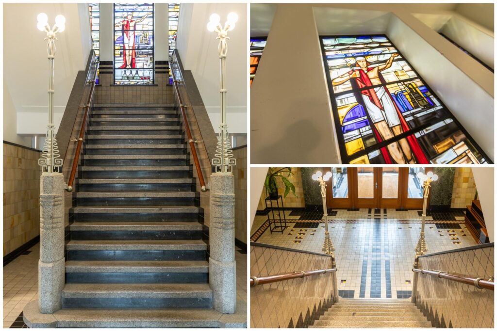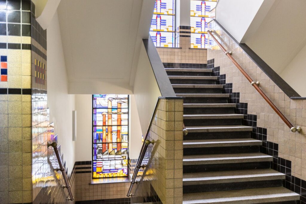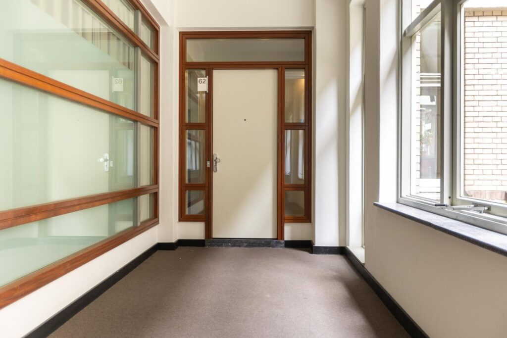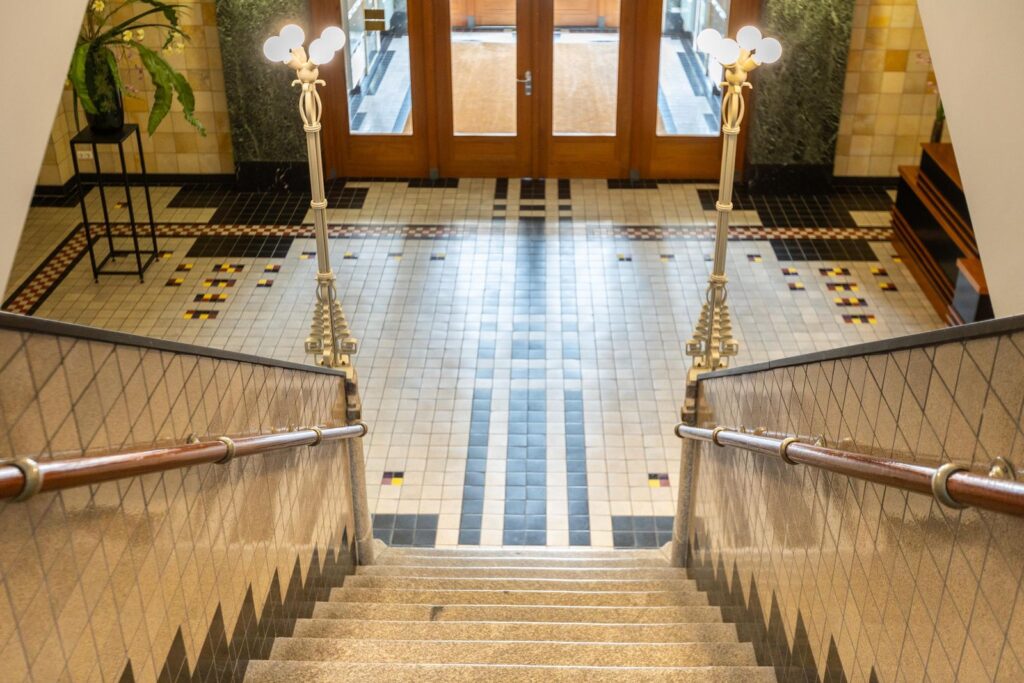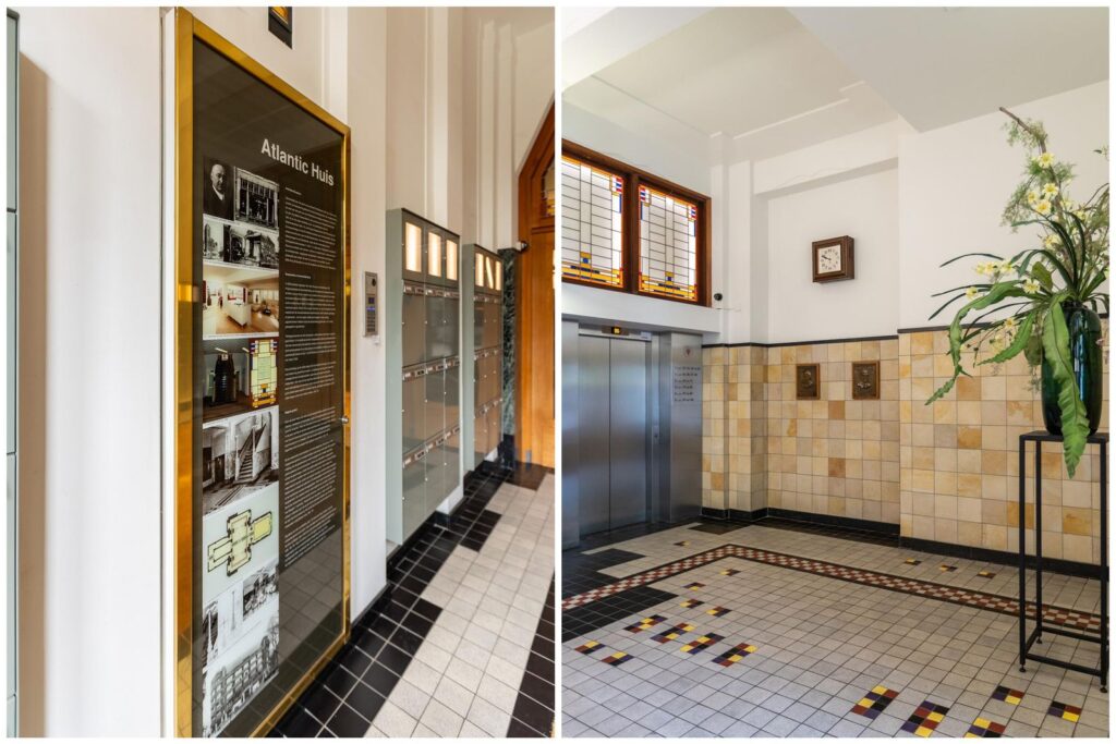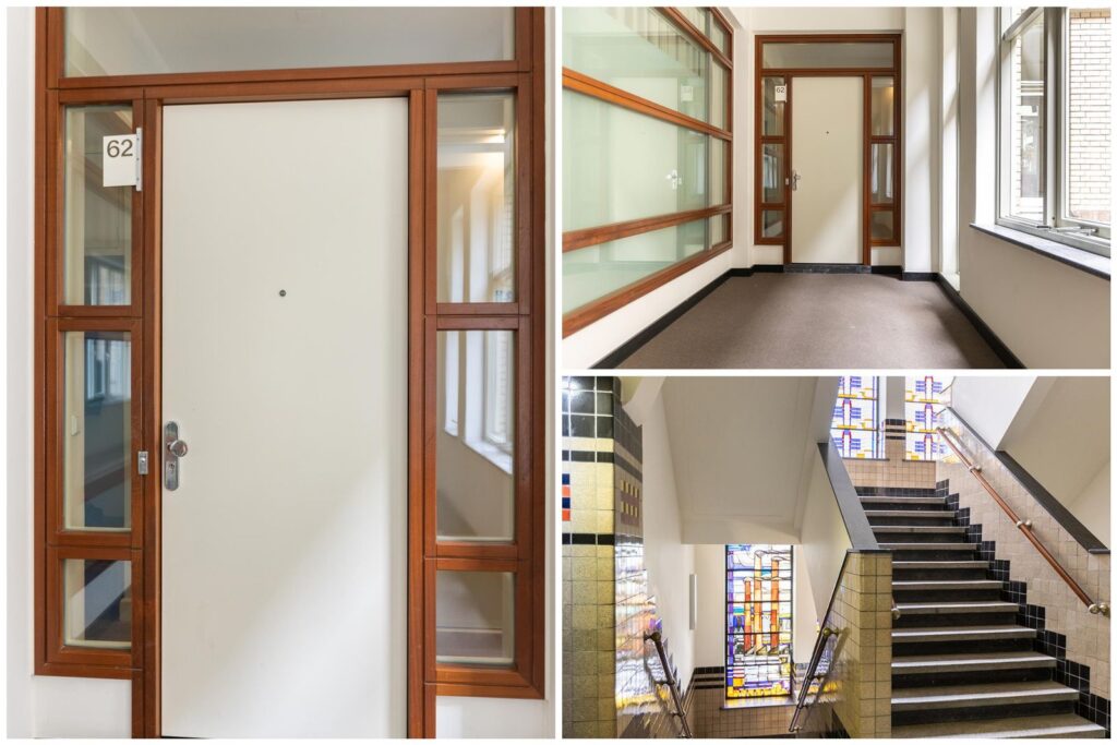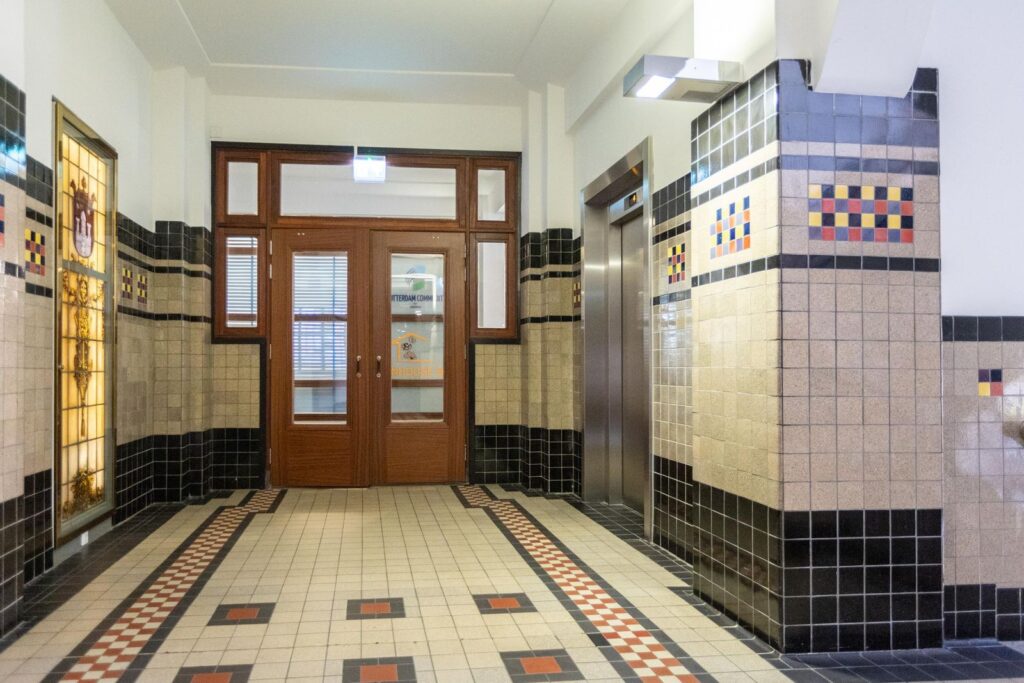 Centraal aan het Westplein bevindt zich de stijlvolle ingang, voorzien van intercom met videofoon en brievenbussen. De majestueuze centrale hal verwelkomt je met hernieuwde deurpartijen, indrukwekkende glas-in-lood raampartijen, een prachtige mozaïekvloer en een monumentaal trappenhuis. Vanuit deze hal heb je toegang tot de liften, de parkeergarage en de gemeenschappelijke afvalcontainerruimte en fietsenstalling.