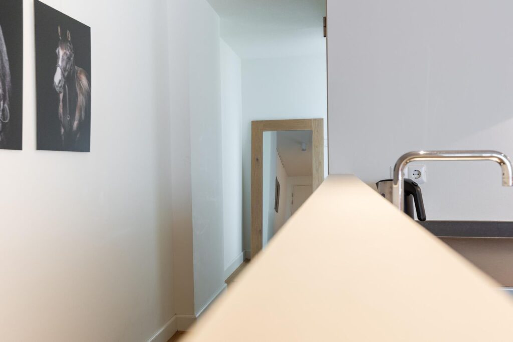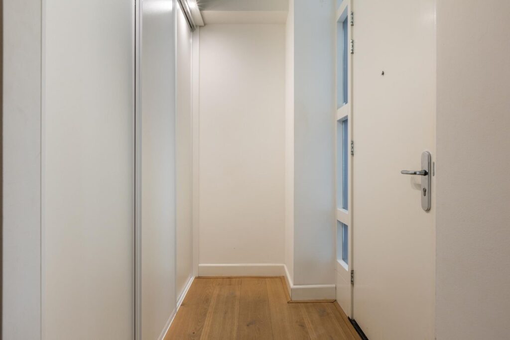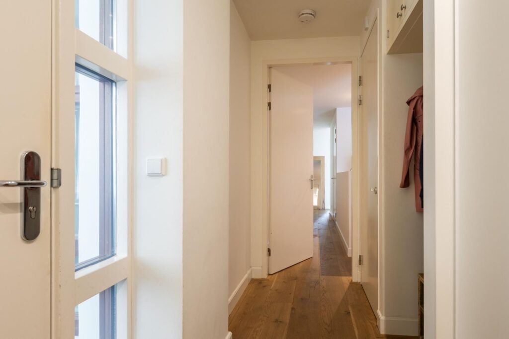 Bij binnenkomst word je verwelkomd in een ruime entree met een praktische garderobe. Hier kun je al je jassen en schoenen netjes opbergen, zodat de rest van de woning altijd opgeruimd blijft.