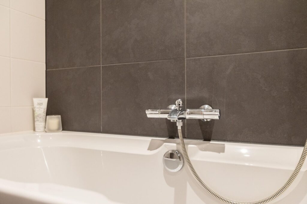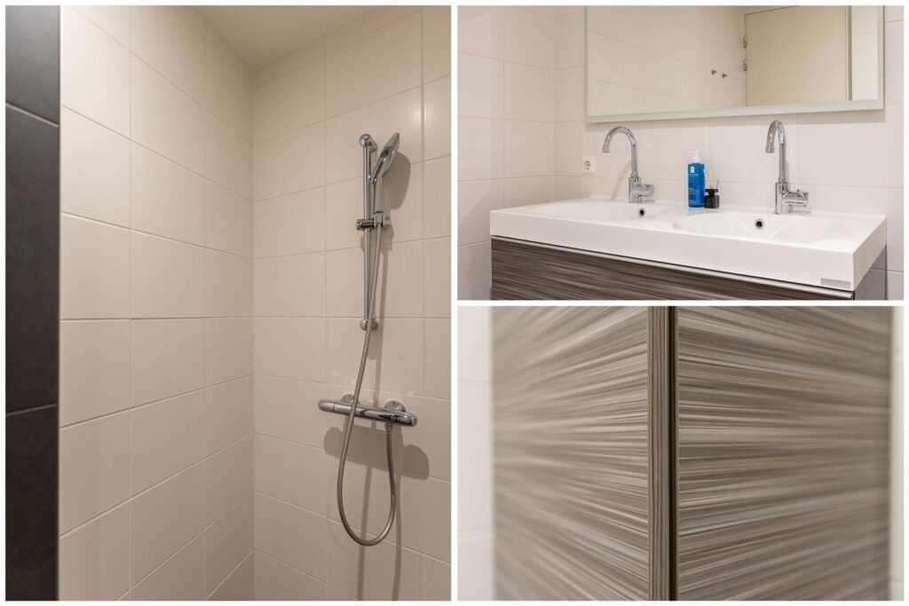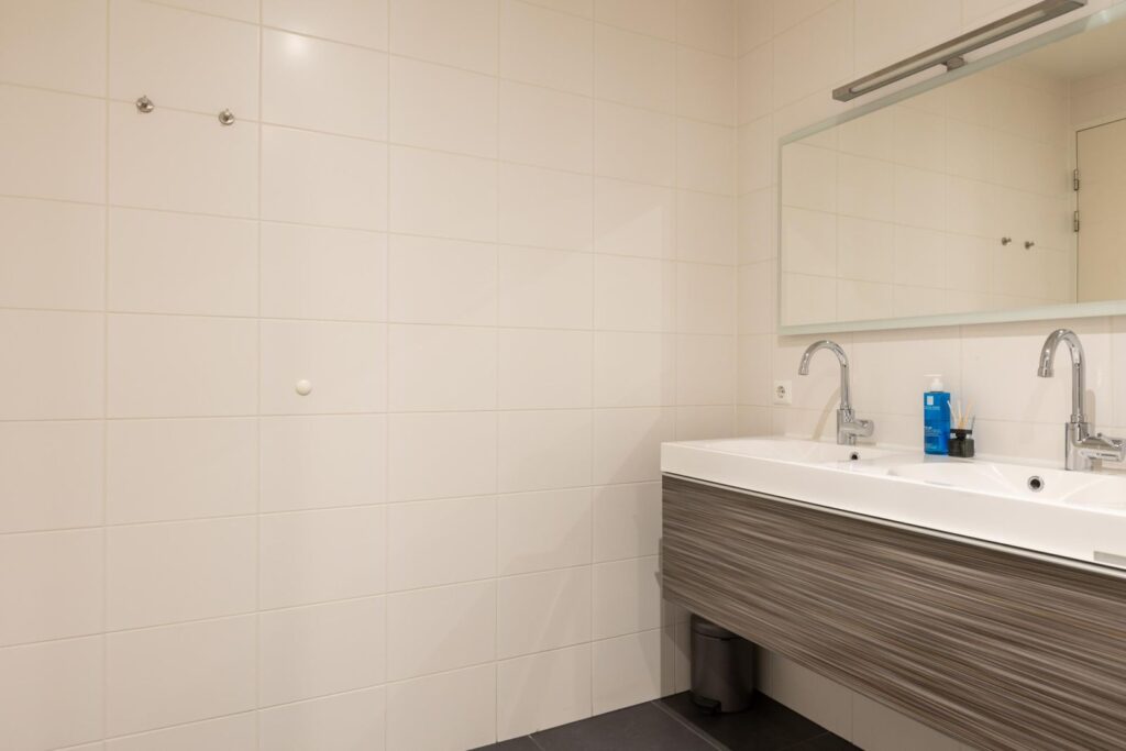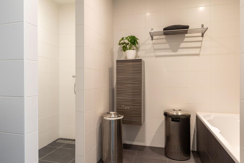 De luxe badkamer is ontworpen voor ultieme ontspanning. Met een ruim ligbad, een moderne inloopdouche en een dubbele wastafel is dit de perfecte plek om de dag te beginnen of te eindigen.