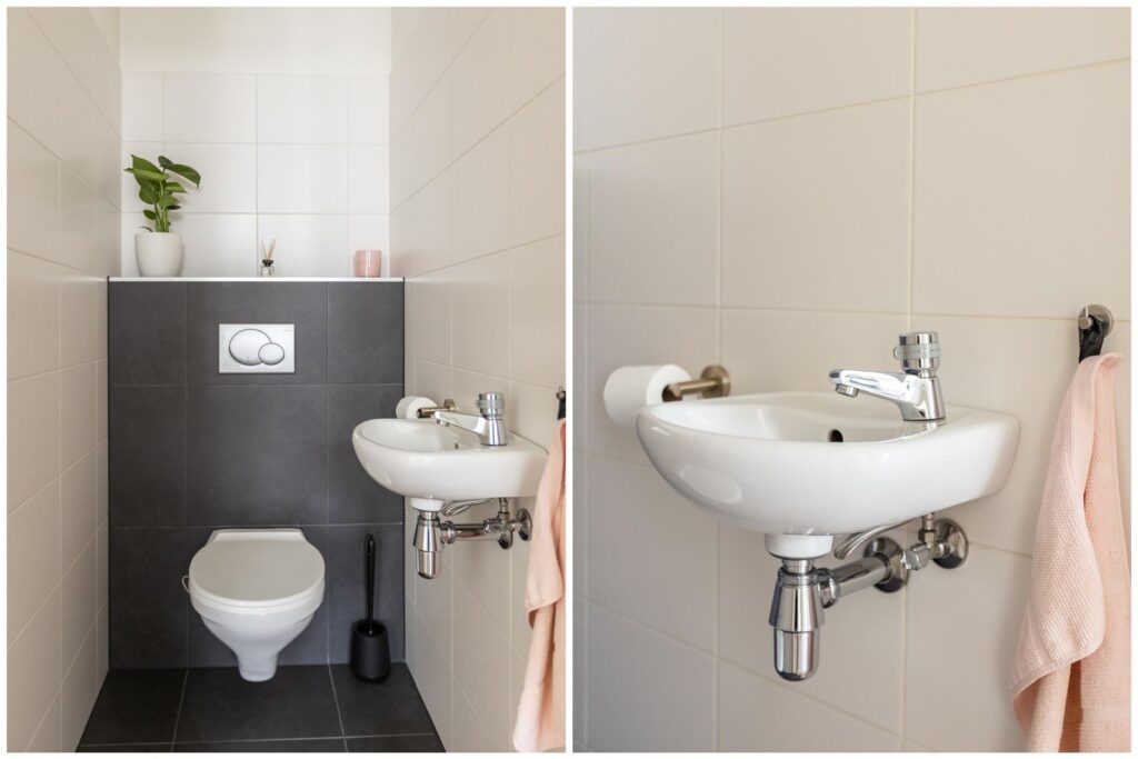 Vanuit de gang heb je toegang tot een modern toilet, een praktische berging met o.a. een wasmachine-aansluiting, een riante luxe badkamer en de slaapkamers.