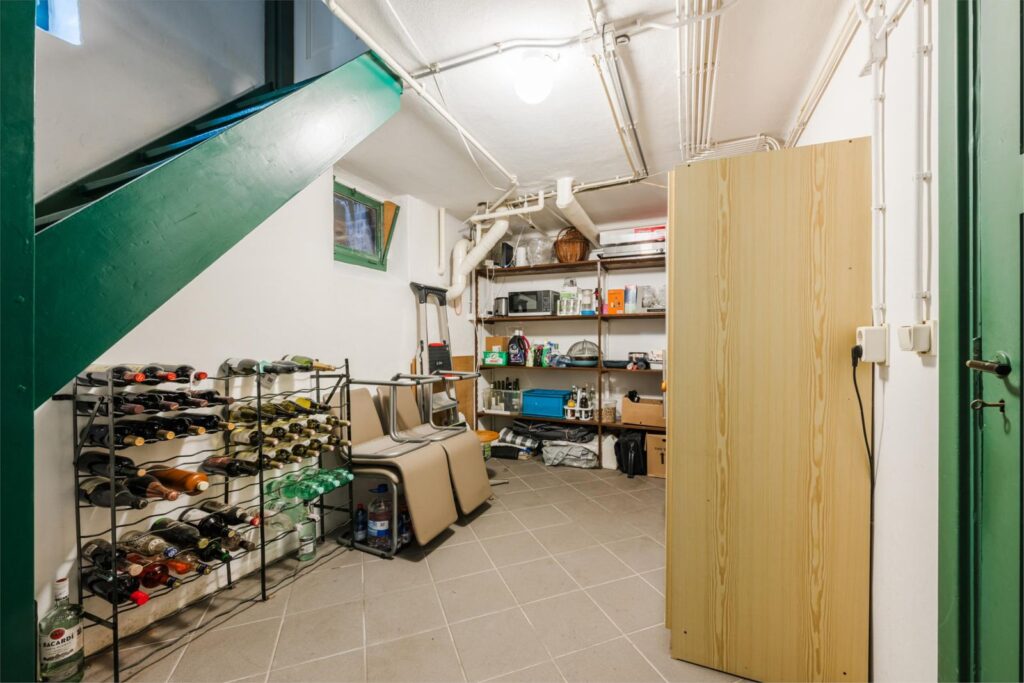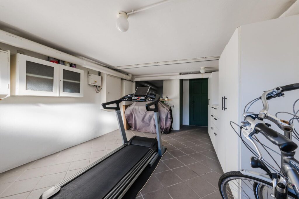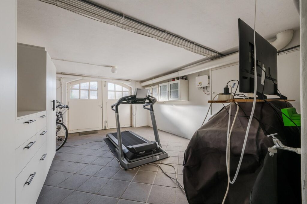 Een inpandige garage van circa 20 m². Een voorraadkelder: circa 11 m², koel, droog, multifunctioneel en ideaal voor opslag, twee kleinere kelderruimten, waarvan er een geschikt te maken is als wijnkelder. De andere is de technische ruimte voor de cv-installatie en berging.