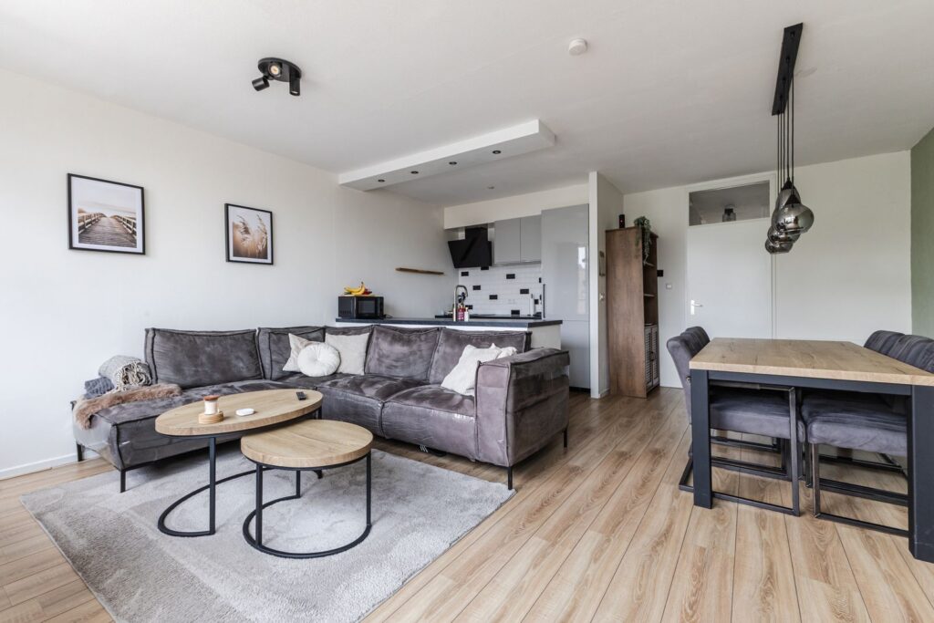 Het appartement is netjes afgewerkt en netjes onderhouden. Via de centrale hal zijn alle vertrekken bereikbaar, wat zorgt voor een fijne en overzichtelijke leefruimte. Het gehele appartement voorzien van een stijlvolle houtlook laminaatvloer, wat samen bijdraagt aan de strakke en moderne uitstraling. In de hal vindt u een garderobe en een toilet met fonteintje, afgewerkt met strak tegelwerk voor een verzorgde en eigentijdse look. De lichte woonkamer is gelegen aan de achterzijde van het appartement en biedt dankzij de grote ramen een aangename hoeveelheid daglicht. Vanuit de woonkamer stapt u zo het fijne balkon op — dé plek om even tot rust te komen, een goed boek te lezen of te genieten van een glas wijn met uitzicht. Dankzij de ligging op het oosten geniet u hier ’s ochtends van de eerste zonnestralen en een heerlijke start van de dag. Kortom: een comfortabel en sfeervol thuis met een buitenruimte die uitnodigt tot ontspannen.