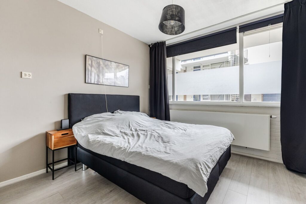 De slaapkamer bevindt zich aan de voorzijde van het appartement en wordt heerlijk verlicht door de ramen die het daglicht royaal binnenlaten. De ruimte is praktisch van formaat, waardoor er met gemak een tweepersoonsbed én een royale kledingkast geplaatst kunnen worden. Een fijne, rustige plek om de dag ontspannen af te sluiten. Grenzend aan de slaapkamer bevindt zich de badkamer – ideaal, want zo stapt u ’s ochtends rechtstreeks vanuit bed de badkamer in. De ruimte is praktisch ingedeeld en voorzien van een inloopdouche, een wastafel én handdoekradiator. Het geheel is afgewerkt met riant tegelwerk, wat de badkamer een verzorgde uitstraling geeft. Een fijne plek om zowel fris te starten als ontspannen af te sluiten.
